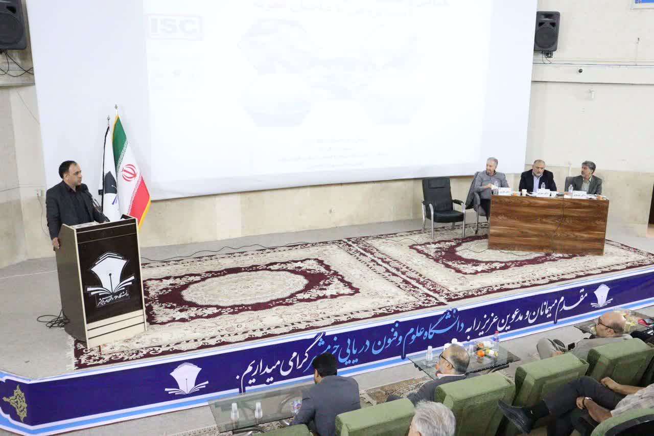 در این رویداد تخصصی، جمعی از مسئولان، محققان و فعالان صنعت دریایی حضور داشتند که از جمله آنها میتوان به بختیاری رئیس دانشگاه، فلاح مدیرکل صنعت، معدن و تجارت استان خوزستان، سوری مدیرکل شیلات استان خوزستان، ناخدا رضایی فرمانده پایگاه دریایی خرمشهر، محمودی رئیس سابق صندوق توسعه صنایع دریایی، کوتی مدیر صندوق پژوهش و نوآوری استان خوزستان، حسین هوشمند رئیس پژوهشکده آبزیپروری آبهای جنوب کشور، جمعی از پرورشدهندگان آبزیان، صاحبان صنایع دریایی استان، محققان، دانشجویان و دیگر رؤسای ادارات مرتبط با صنعت دریایی در منطقه اشاره کرد.