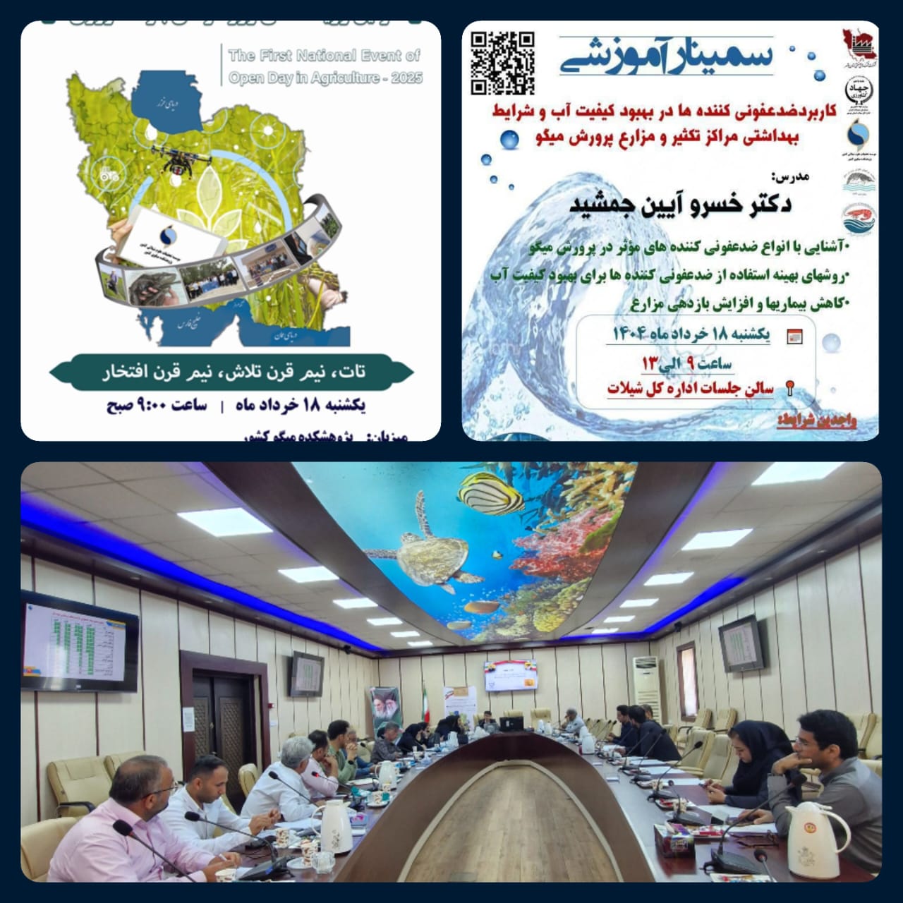 هدف از برگزاری این رویداد ملی، ارائه دستاوردهای شاخص حوزه کشاورزی در تمامی زمینهها به جامعه هدف و ارتقای آگاهیهای تخصصی بهرهبرداران عنوان شد. در این مراسم، سمینار علمی-آموزشی با موضوع «کاربرد ضدعفونیکنندهها در بهبود کیفیت آب و شرایط بهداشتی مراکز تکثیر و مزارع پرورش میگو» با ارائه دکتر آئین جمشید، معاون پژوهشی پژوهشکده، برگزار شد.