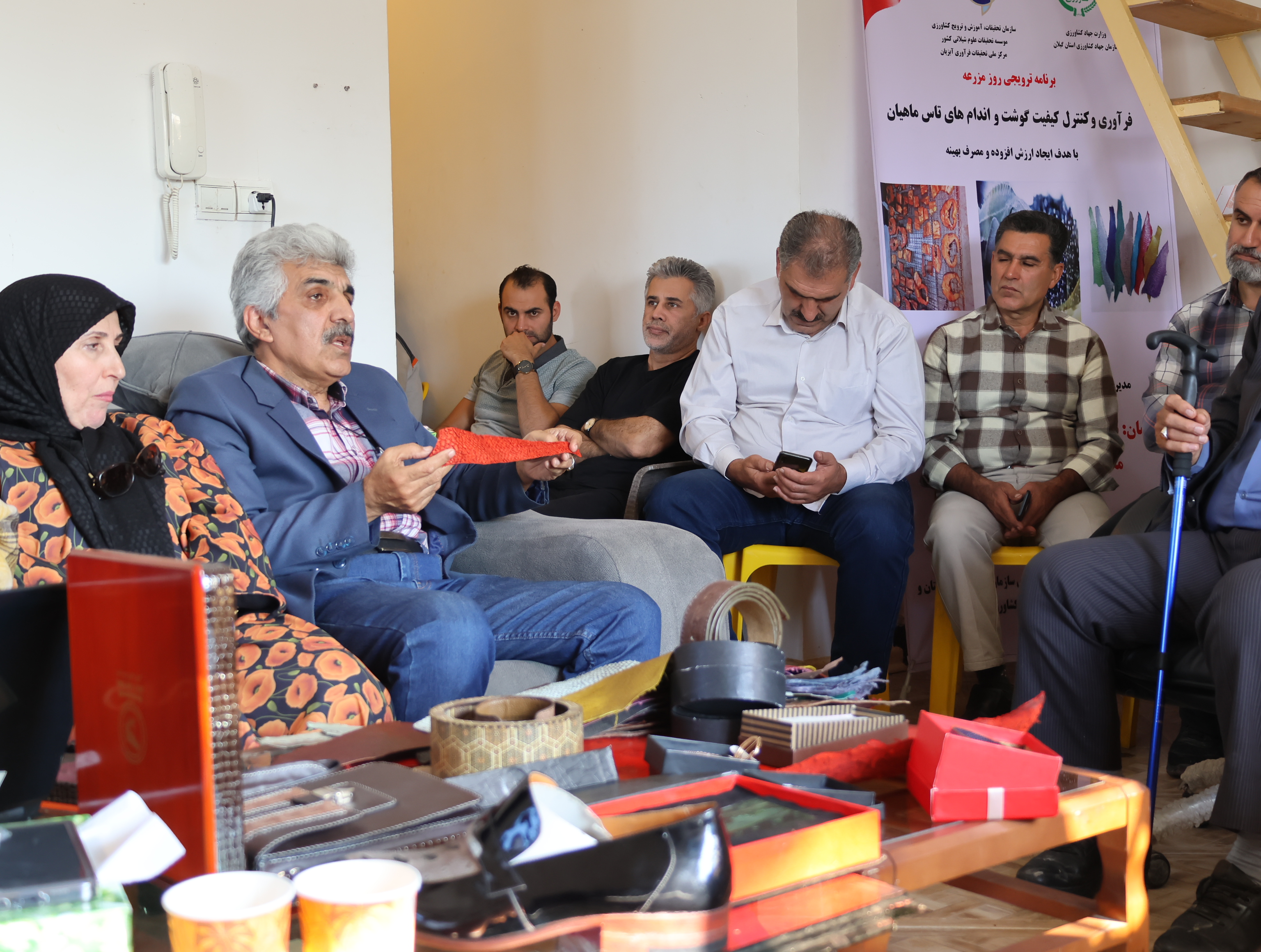 یکی از کارشناسان گروه تولیدی چرم ماهی نیز توضیحاتی درباره مراحل دباغی، ویژگیهای فیزیکی چرم تاسماهیان، بازار فروش و کاربردهای صنعتی آن ارائه کرد و نمونههای تولیدشده را بهصورت عملی در معرض دید شرکتکنندگان قرار داد.