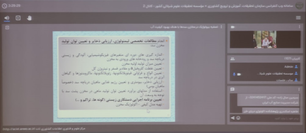 همچنین فرحناز کیاناِرثی، رئیس بخش اکولوژی پژوهشکده، با ارائه گزارش «پتانسیل دریاچههای پشت سد استان خوزستان با تأکید بر دریاچه پشت سد مارون»، به تشریح نتایج تحقیقات انجامشده در دهههای اخیر پرداخت. وی در این گزارش، ظرفیتهای زیستی و شرایط لیمنولوژیک این مخازن و گونههای قابلپرورش را بررسی کرد.