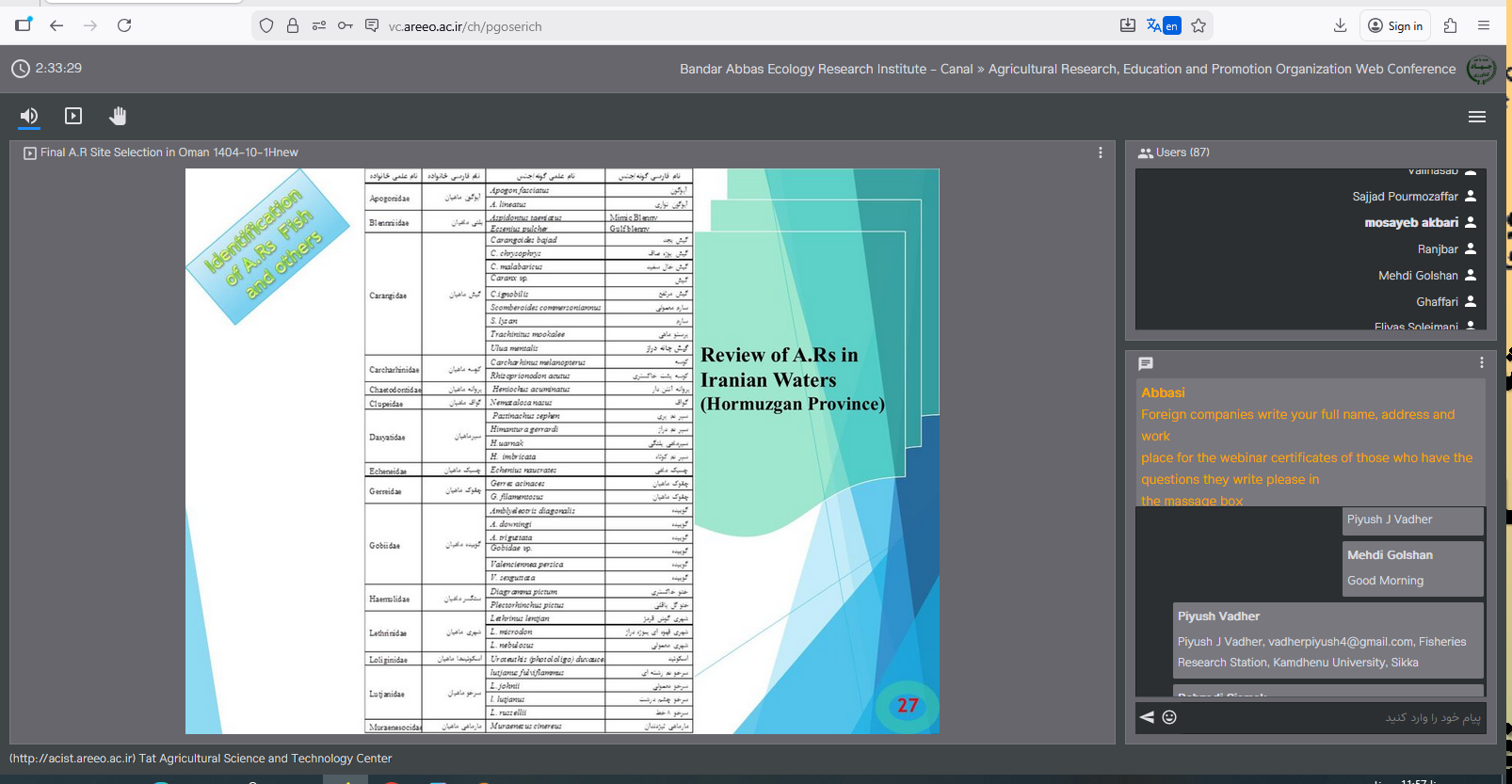 این وبینار با استقبال پژوهشگران، مدیران و علاقهمندان حوزه شیلات و محیط زیست دریایی همراه بود و بر ضرورت تقویت همکاریهای علمی و پژوهشی منطقهای و بینالمللی در راستای مدیریت پایدار منابع دریایی تأکید شد.