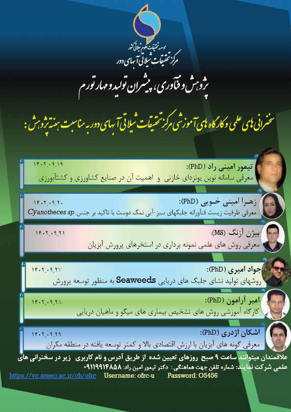برگزاری سخنرانی‌های وبیناری با محور سرمایه‌گذاری در تولید با پشتوانه پژوهش و فناوری در پژوهشکده آبزی‌پروری آب‌های جنوب کشور