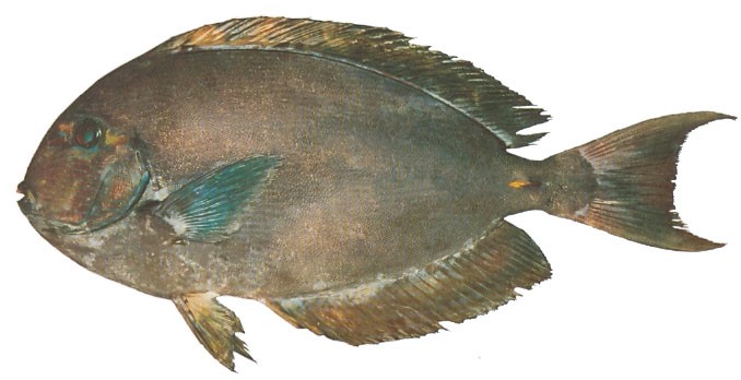 بدن فشرده و نسبتاً مرتفع. باله پشتي پيوسته و منفرد، داراي 9 خار و 24 تا 26 شعاع نرم. ساقه دمي باريك و طول استاندارد 10 تا 12 برابر كمترين ارتفاع آن. يك خار تيغ مانند در هر طرف ساقه دمي وجود دارد كه در شياري عميق به صورت افقي قرار ميگيرد.باله مخرجي داراي 3 خار و 23 يا 24 شعاع نرم.