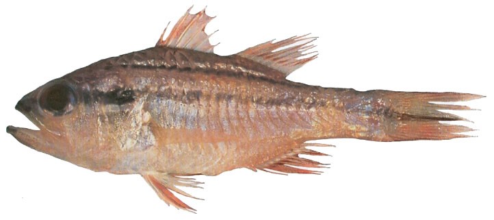 بدن كشيده و فشرده. اولين باله پشتي با 8 خار و دومين باله پشتي داراي يك خار و 9 شعاع نرم. فلسهاي جلوي باله پشتي 5 عدد. 14 خار آبششي روي بخش پاييني اولين كمان آبشش. باله مخرجي داراي 2 خار و 8 شعاع نرم. در طول خط جانبي 28 فلس وجود دارد.