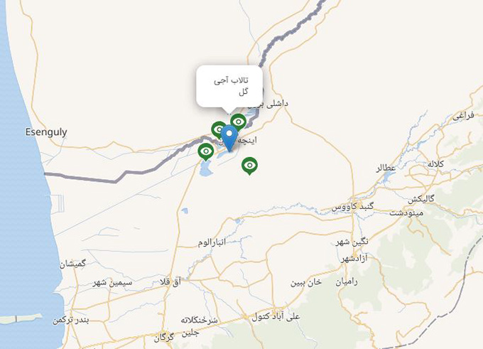 تالاب آجی گل در جنوب رودخانه مرزی اترک به فاصله 75 کیلومتری شمال شهر گنبدکاووس واقع است.موقعیت جغرافیایی این تالاب N3724 و E5438 می باشد.آجی گل مساحت 320 هکتاری دارد. با ارتفاع 5 منر از سطح دریا.