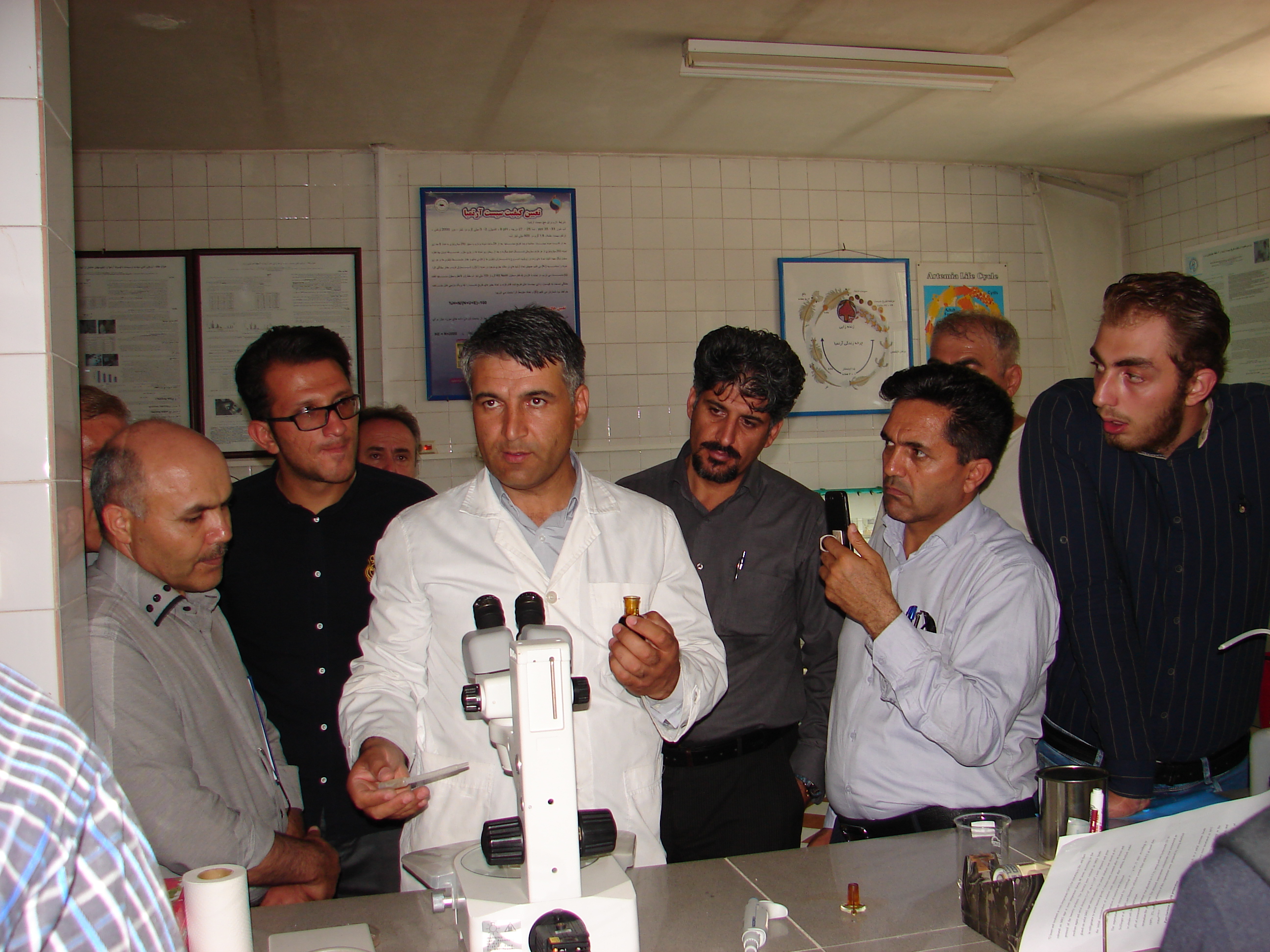 به گزارش روابط عمومی مرکز تحقیقات آرتمیای کشور_ ارومیه، در راستای کمک به رونق تولید آرتمیا در آب های غیر متعارف و انجام تعهدات حوزه ترویج، جهت آشنایی کارشناسان پهنه، مروجین و بهره برداران دوره آموزشی – ترویجی به صورت تئوری و عملی برگزار گردید. دراین دوره که به تعداد 40 نفر شرکت کننده حضور داشتند، دکتر نکوئی فرد رئیس مرکز و دکتر صیدگر و دکتر عباسپور در مورد آرتمیا و گونه های آن در جهان، ارزش اقتصادی، نوع استخرهای پرورشی، نحوه آماده سازی و پرورش آرتمیا، ارزش غذایی آرتمیا در صنعت آبزی پروری، بازاریابی و درآمدزایی آرتمیا و نحوه عمل آوری محصولات آرتمیا مطالبی را به صورت تئوری و عملی آموزش دادند. سپس با نمایش فیلم آموزشی از مراحل مختلف آماده سازی استخر های پرورشی، نحوه بهره برداری و فرآوری محصولات آرتمیا، توضیحات لازم توسط دکتر علی نکوئی فرد بیان گردید.