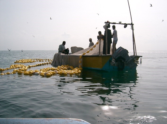 صیدگاه های ماهیان سطح زی ریز در هرمزگان از پارسیان در غرب تا سورگلم در شرق هرمزگان پراکنده اند. ۷۸ درصد صید ماهیان سطح زی ریز در جزیره قشم ، ۱۶ درصد در بندرلنگه، ۴ درصد در جاسک و ۲ درصد نیز در پارسیان صید می شوند. عمده صید این ماهیان با روش پرساین دوقایقی انجام می شود، اما از روش های جل ساحلی ساردین و لنج پرساین هم استفاده می شود. ترکیب صید ماهیان سطح زی در هرمزگان، ۷۰ درصد ماهی موتو و ۳۰ درصد نیز ساردین است.