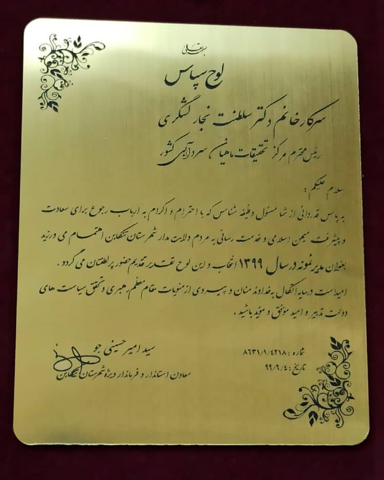 به گزارش روابط عمومی مرکز تحقیقات ماهیان سردآبی کشور_ تنکابن، خانم دکتر لشگری، رئیس مرکز در جلسه شورای عالی اداری شهرستان تنکابن شرکت نمود و پیرو برنامه ریزی انجام شده توسط فرمانداری ویژه شهرستان تنکابن پس از ایراد سخنان حجت الاسلام و المسلمین هدایتی، امام جمعه شهرستان تنکابن؛ حجت الاسلام والمسلمین رضایی، امام جمعه شهر نشتارود و ارائه گزارش اقدامات انجام شده شبکه بهداشت و درمان شهرستان تنکابن توسط دکتر نژاد مقدم، ضمن معرفی مرکز، گزارشی از توانمندی ها و دستاوردهای شاخص آن از بدو تأسیس تا مهر ماه سال 1399 با محوریت ماهی آزاد دریای خزر، قزل آلای رنگین کمان و گیاهان دارویی ارائه نمود و خواستار حمایت فرماندار ویژه، بخشدار خرم آباد و رؤسای اداره منابع طبیعی، امور منابع آب و دفتر خدمات کشاورزی و منابع طبیعی شهرستان تنکابن جهت اجرای ریپ رپ جنب ضلع شرقی و شمالی مرکز و اطراف لوله های چشمه مرکز در محدوده انتهایی پارک چالدره، محصور نمودن چشمه های مرکز در محدوده انتهایی پارک چالدره، رفع مشکلات حریم کیفی و کمی رودخانه در مجاورت ضلع شرقی مرکز جهت دریافت پروانه بهره برداری، خلع ید معارض زمین مرکز، حفاظت از موجودات و اکوسیستم رودخانه مهم حوضه جنوبی دریای خزر که جزء نقشه شهرستان تنکابن است به خصوص رودخانه چشمه کیله به عنوان مهمترین رودخانه محل مهاجرت بیشتر گونه های اقتصادی دریای خزر و با توجه به حضور مهندس رازجویان، معاون هماهنگی امور عمرانی استانداری مازندران در جلسه ضمن تشکر از استاندار، معاون هماهنگی امور اقتصادی استانداری مازندران و فرماندار ویژه شهرستان تنکابن خواستار حمایت مسئولین استان جهت تکمیل و تجهیز سوله تحقیقاتی ماهی آزاد دریای خزر به منظور ادامه اهلی سازی و متعاقب آن اصلاح نژاد این ماهی جهت توسعه آبزی پروری سردآبی کشور و جهش تولید شدند. سپس دکتر حسینی جو، فرماندار ویژه شهرستان تنکابن و مهندس رازجویان در خصوص پروژه های عمرانی در دست اجرای شهرستان سخنانی را ایراد نمودند. در پایان جلسه معاون استاندار و فرماندار ویژه شهرستان تنکابن با اهدا لوح سپاس از اهتمام و وظیفه شناسی خانم دکتر لشگری در راستای پیشرفت میهن اسلامی و خدمت رسانی به مردم ولایتمدار شهرستان تنکابن تقدیر نمود.