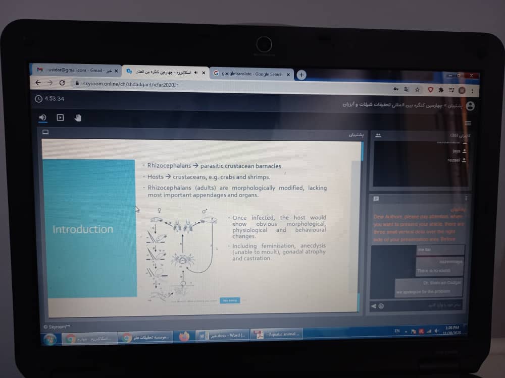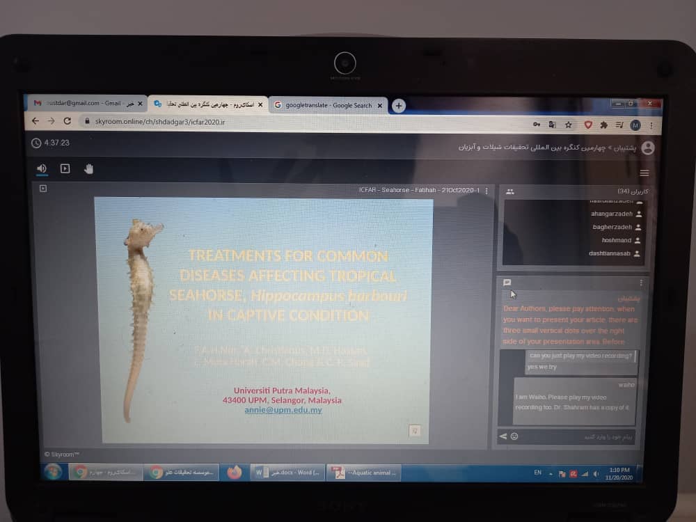 پنل امروز از ساعت 8 الی 18:30 با محوریت بهداشت و بیماری های آبزیان وبا مدیریت دکتر سید جلیل ذریه زهرا و دکتر عیسی شریف پور (از اعضای هیات علمی موسسه تحقیقات علوم شیلاتی کشور) و با حضور 24 سخنران از کشورهای ایران، آمریکا، سریلانکا و مالزی با موضوعاتی از قبیل ایمن سازی آبزیان با استفاده از انواع افزودنی ها، اثرات جایگزینی برخی مکمل ها در بهبود روند ایمنی آبزیان، اثر انواع مواد جایگزین درتغذیه آبزیان بر روی فعالیت آنزیم های گوارشی، بررسی انواع بیماری های ویبریو و دیگر بیماری های ویروسی در آبزیان از جمله ماهی قزل آلا، کاربردهای درمانی زالو در آبزیان و... درحال برگزاری است.