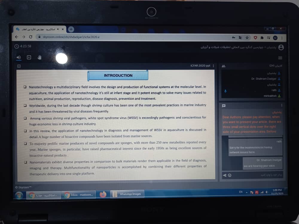 پنل تخصصی دوم از ساعت 13 الی 15:30 با موضوع فناوری های جدید در علوم شیلات و آبزیان با تاکید بربیوتکنولوژی و فناوری نانو با مدیریت دکتر مریم میر بخش (عضو هیات علمی و رییس بخش زیست فناوری موسسه تحقیقات علوم شیلاتی کشور) با حضور 5 سخنران از کشورهای ایران، آمریکا و هند و با ارائه موضوعاتی از قبیل تصفیه بیولوژیکی پساب های نیروگاه حرارتی با نانو ذرات کیتوزان و کیتوزان، کاربرد و اهمیت فناوری نانو در پیشگیری و مدیریت ویروس لکه سفید در پرورش میگو و... برگزار خواهد شد.