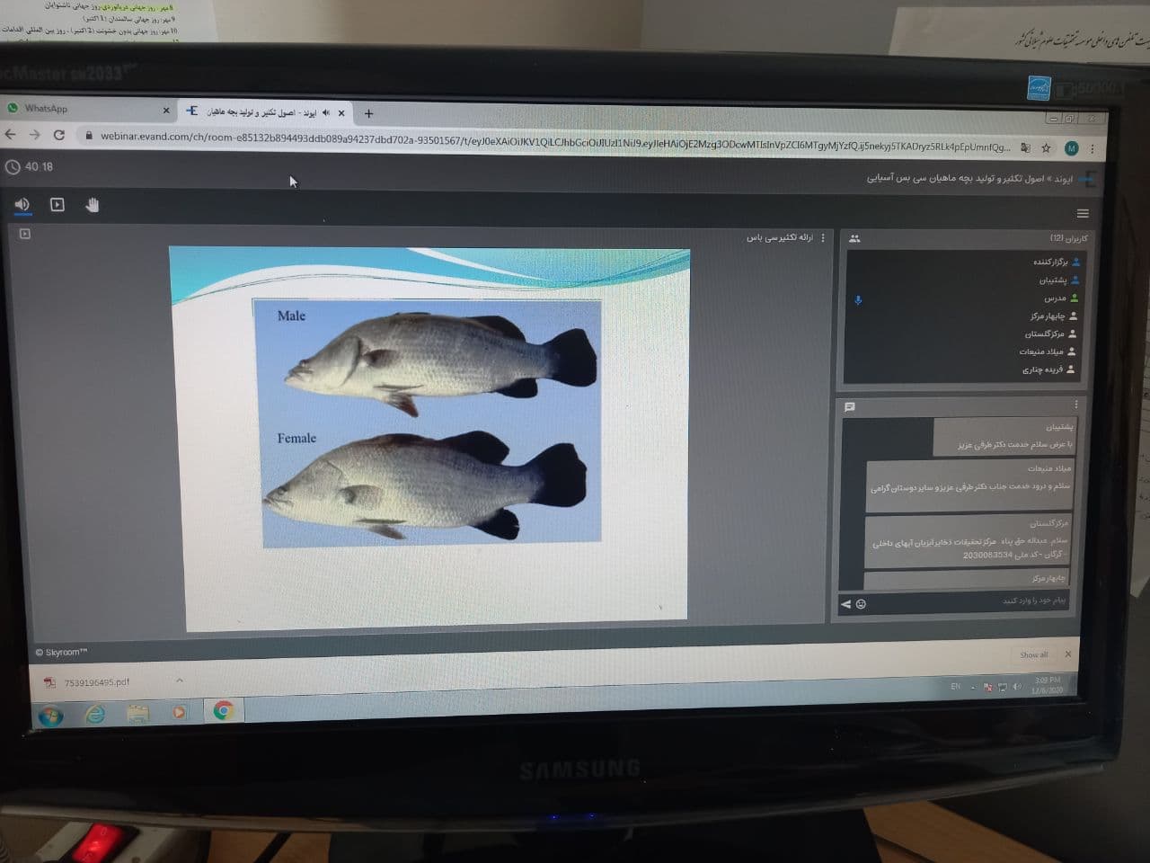 به گزارش روابط عمومی موسسه تحقیقات علوم شیلاتی کشور، هفتمین کارگاه آموزشی از سری کارگاه های برنامه ریزی شده در هفته پژوهش با عنوان "اصول تکثیر و تولید بچه ماهیان باس دریایی آسیایی" با تدریس دکتر منصور طرفی، عضو هیات علمی و استادیار پژوهشکده آبزی پروری جنوب کشور_ اهواز، یکشنبه مورخ 16 آذر 1399 ساعت 15 الی 16:30 به صورت مجازی برگزار شد. ابتدا به کل تولید باس دریایی در دنیا و کشورهای تایوان، مالزی، تایلند، اندونزی و استرالیا که در زمینه تولید و تکثیر ماهی باس دریایی اقدام نمودند، اشاره و سپس مواردی از قبیل اصول تکثیر و تولید بچه ماهیان باس دریایی آسیایی، بیولوژی تولید مثل، ویژگی های تکثیر، نگهداری مولدین، مراحل تکامل جنسی در ماهی سی باس آسیایی، انتخاب مولدین برای تکثیر، هورمون تراپی، ایمپلنت هورمونی جهت مولد سازی، انکوباسیون و ضد عفونی تخم ها در این کارگاه به طور مبسوط توضیح داده شد. لازم به ذکر است محققین و اعضای هیات علمی مراکز پژوهشی و دانشگاه ها و مراکز تابعه موسسه از جمله اهواز، چابهار و گلستان در این کارگاه، حضور فعال داشتند. گفتنی است کارگاه استفاده از پروبیوتیک در صنعت میگو فردا همین ساعت برگزار خواهد شد.