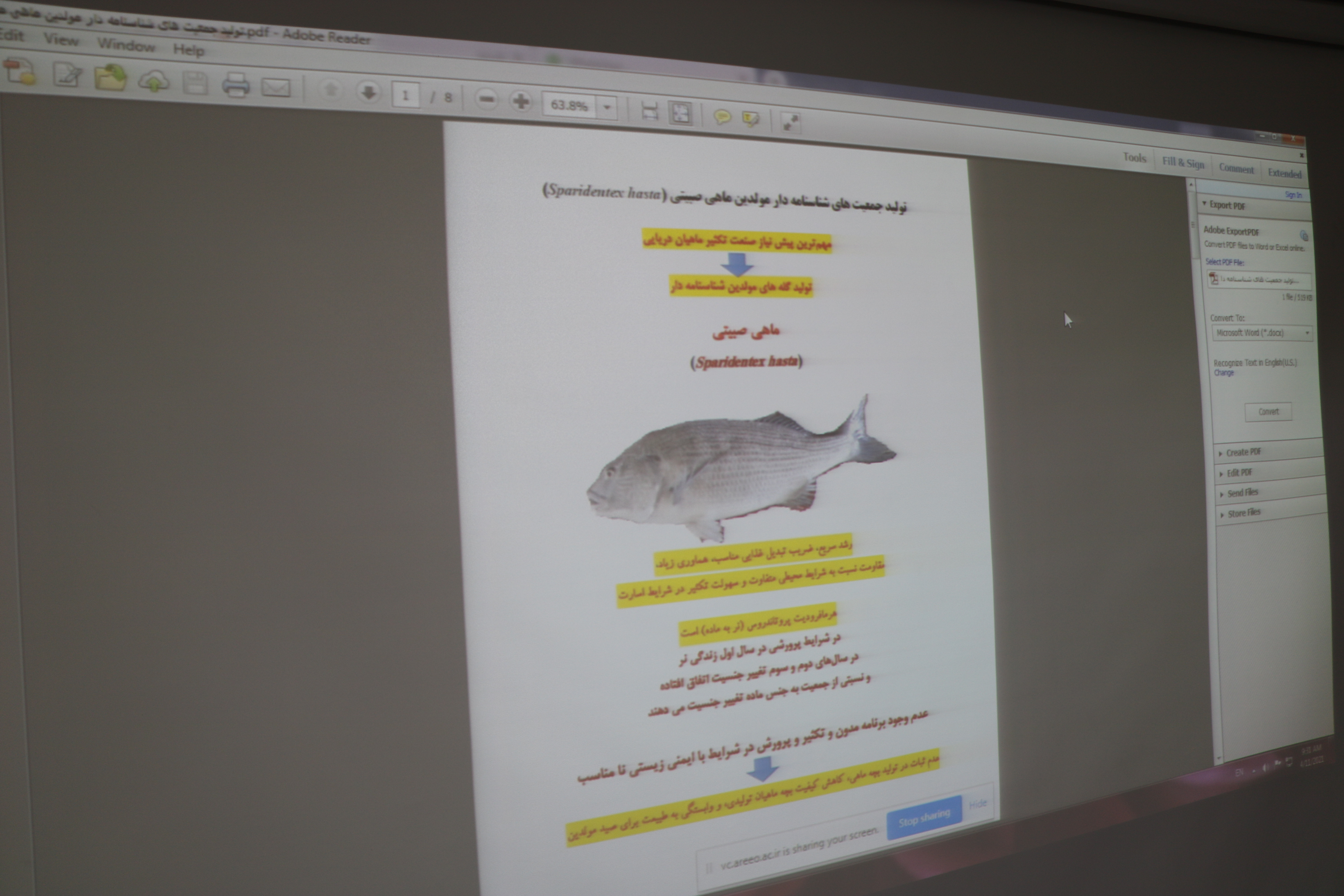 در نهایت، خانم دکتر نجارلشگری، رئیس مرکز تحقیقات ماهیان سردآبی کشور-تنکابن، در ارتباط با تکثیر، پرورش و آداپتاسیون ماهی آزاد دریای خزر، با هدف معرفی به قفس های پرورشی، گزارش کاملی را ارائه داد.