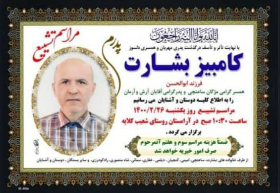 درگذشت مهندس کامبیز بشارت، از همکاران عرصه شیلات را به خانواده محترم ایشان تسلیت عرض نموده و برای آن عزیز از دست رفته، از درگاه خداوند متعال مغفرت و برای بازماندگان صبر جمیل خواهانم.