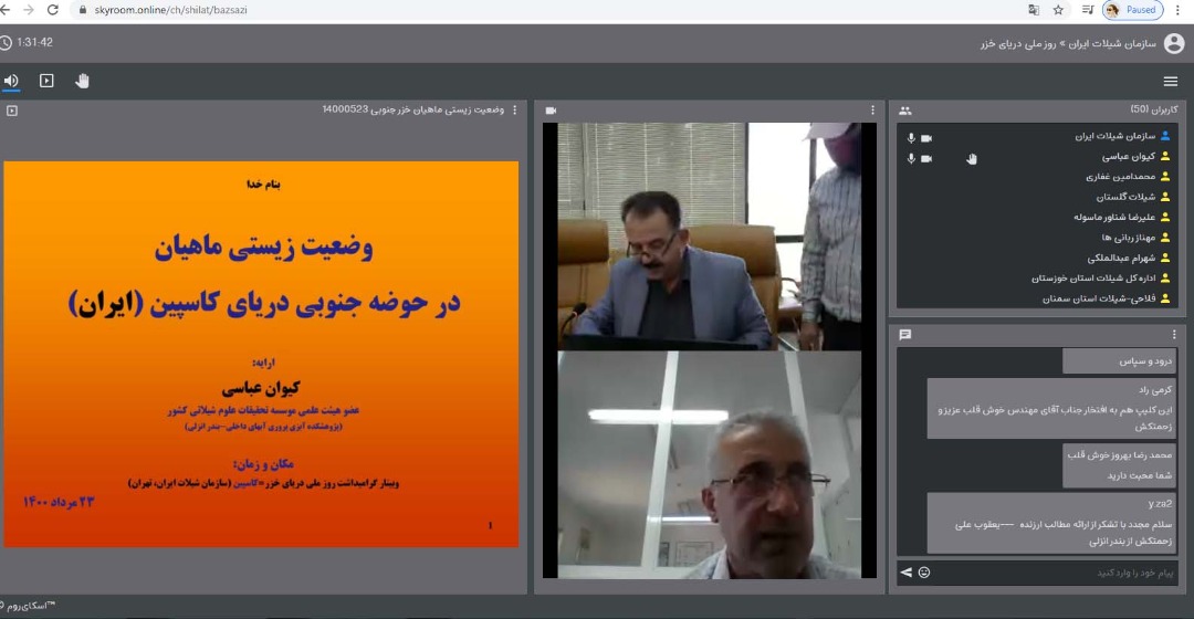 به گزارش روابط عمومی پژوهشکده آبزی پروری آبهای داخلی کشور، به مناسبت گرامیداشت روز ملی دریای خزر، سازمان شیلات ایران وبینار تخصصی در روز شنبه مورخ 23 مرداد 1400 برگزار نمود. در این وبینار ۶ سخنران از جمله ریاست سازمان شیلات ایران و مسئولان بازسازی ذخایر و احیای زیستگاه ها، مطالب خود را در ارتباط با مباحث شیلاتی دریای کاسپین خصوصا صید و بازسازی ذخایر آبزیان ارایه نمودند. دکتر کیوان عباسی، عضو هیات علمی پژوهشکده آبزی پروری آبهای داخلی، تحت عنوان "وضعیت زیستی ماهیان حوضه جنوبی دریای کاسپین" در این وبینار، سخنرانی نمود.