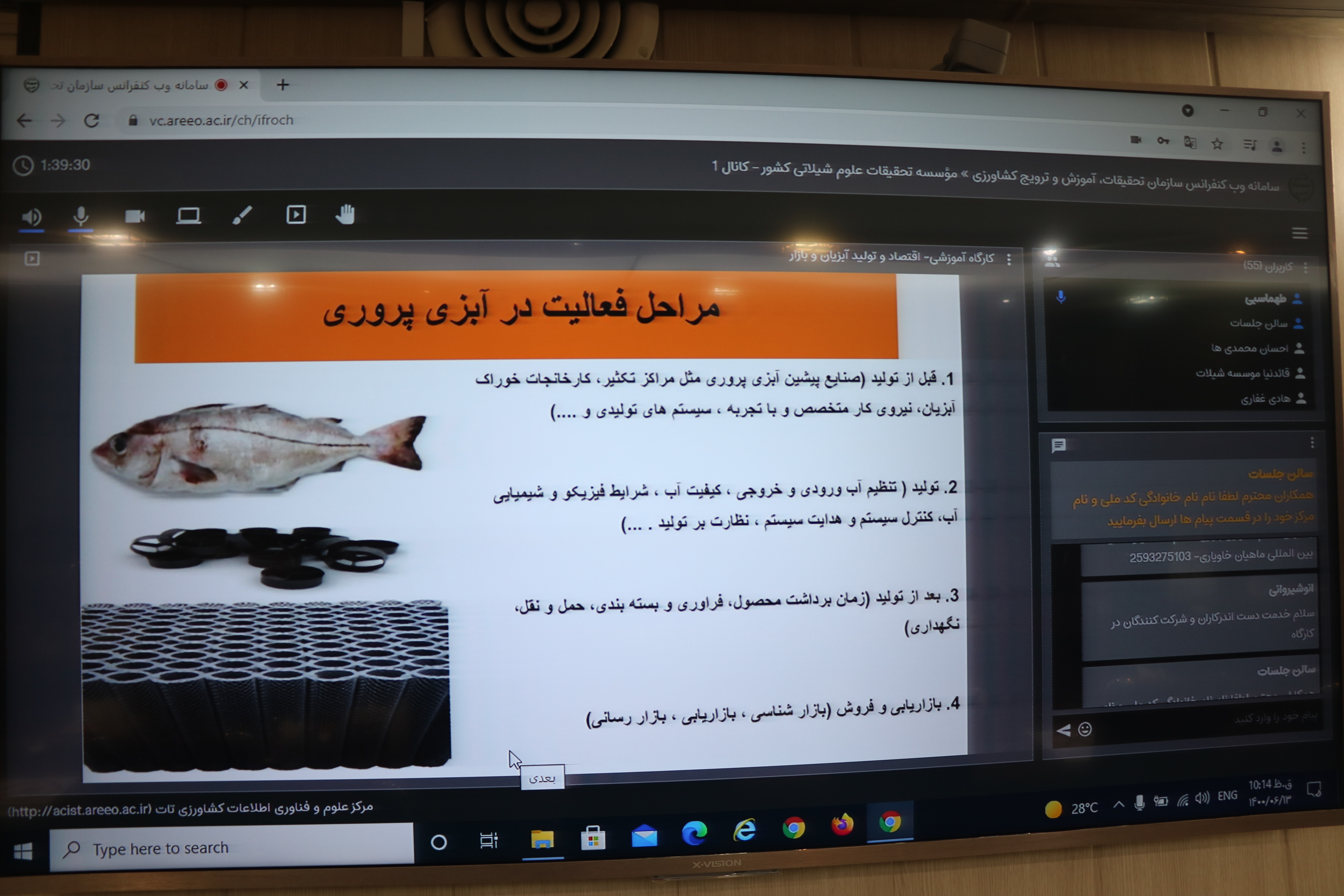 به گزارش روابط عمومی موسسه تحقیقات علوم شیلاتی کشور، دکتر رضا فیض بخش، فوق دکترای اقتصاد و مدیریت شیلات و آبزیان، به عنوان مدرس کارگاه آموزشی اقتصاد و تولید آبزیان و بازار، سخنانی را در ارتباط با مباحث این حوزه به صورت وبیناری برای علاقه مندان، ارائه کرد.