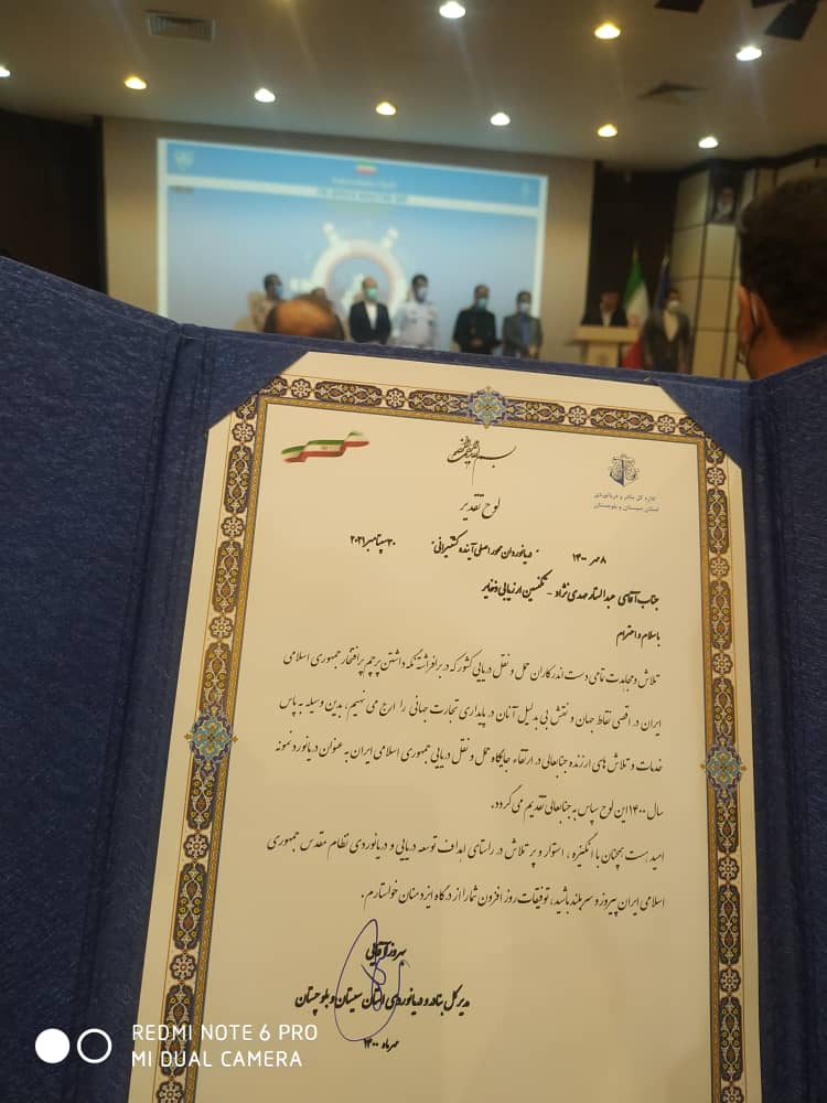 به گزارش روابط عمومی مرکز تحقیقات شیلاتی آبهای دور_ چابهار، به مناسبت "روز دریانوردی" اداره کل بنادر و دریانوردی سیستان و بلوچستان برای تقدیر از دریانوردان نمونه اداره کل، سایر اداره ها، نهادها، ارگان ها و شرکت های مرتبط دریایی با معرفی افراد نمونه توسط آن ادارات و ارگان ها اقدام نمود. در این مراسم برخی از همکاران از طرف مرکز معاونت پژوهشی شرکت نمودند، آقای ستار مهدی نژاد همکار بخش بیولوژی و ارزیابی ذخایر مرکز که به پاس زحمات و تلاش های انجام شده توسط ایشان در گشت های دریایی سالانه ارزیابی ذخایر و اقدامات ترویجی روش های نوین صید، توسط شناور تحقیقاتی فردوس یک فعالیت دریانوردی داشتند، با دریافت لوح تقدیر از آن اداره کل و هدیه از طرف مرکز مورد تقدیر قرار گرفتند.