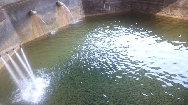 مزرعه با ظرفیت کل 5 تن متشکل از 6 عدد حوضچه 8 ضلعی و هر حوضچه با حجم تقریبی 40 متر مکعب و عمق تقریبی 2/2 متر با خروجی مجزا در بخش جنوبی روستا قرار داشته و منبع آب آن چشمه و رودخانه با دبی نا مشخص و میانگین دمای 12 درجه سانتیگراد مجهز به سیستم رسوب گیر در قسمت ورودی آب، دستگاه UV جهت ضدعفونی نمودن آب ورودی، درام فیلتر جهت استفاده از آب برگشتی و پمپ هواده بود. ماهیان قزل آلا از وزن حدود 2-3 گرم در آبان ماه به حوضچه ها معرفی شده و تا فروردین ماه سال بعد پرورش داده می شوند. تغذیه ماهیان با استفاده از غذای شرکت 21 بیضا طبق جدول غذادهی ماهیان سردآبی انجام می شود. از محلول آب نمک به میزان تقریبی 7-8 گرم در لیتر و پرسیدین 5 درصد جهت ضدعفونی ماهیان استفاده می شود.