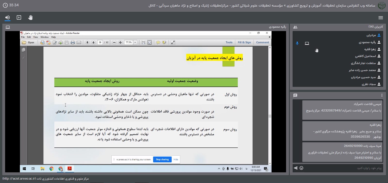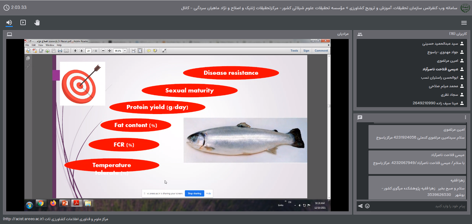 به گزارش روابط عمومی مرکز تحقیقات ژنتیک و اصلاح نژاد ماهیان سردآبی شهید مطهری یاسوج، وبینارهای آموزشی "تشکیل جمعیت پایه و طراحی تلاقی در برنامه اصلاح نژاد"، "مروری بر عملکرد برنامه اصلاح نژاد مولکولی و ژنومی ماهیان سردآبی" و "بهینه سازی تولید ماهیان تمام ماده قزل آلای رنگین کمان وارداتی"به مناسبت هفته پژوهش به ترتیب توسط دکتر رقیه محمودی، دکتر سجاد نظری و دکترابوالحسن راستیان نسب از محققین و اعضاء هیئت علمی مرکز برگزار گردید. هدف از برگزاری این وبینارها تشریح مولفه های اصلی یک برنامه اجرایی اصلاح نژاد ماهی با تاکید بر آنچه به عنوان پیش نویس برنامه بهبود ژنتیکی برای ماهی قزل آلای رنگین کمان در ایران توسط مشاورین فائو و با همکاری متخصصین داخلی از سازمان شیلات ایران و موسسه تحقیقات علوم شیلاتی کشور تهیه و تدوین شده بود، بیان عملکرد برنامه اصلاح نژاد مولکولی و ژنومی ماهیان سردآبی و اقدام در جهت بهینه سازی تولید ماهیان تمام ماده قزل آلای رنگین کمان از ذخایر ژنتیکی تخم های چشم زده وارداتی بود.