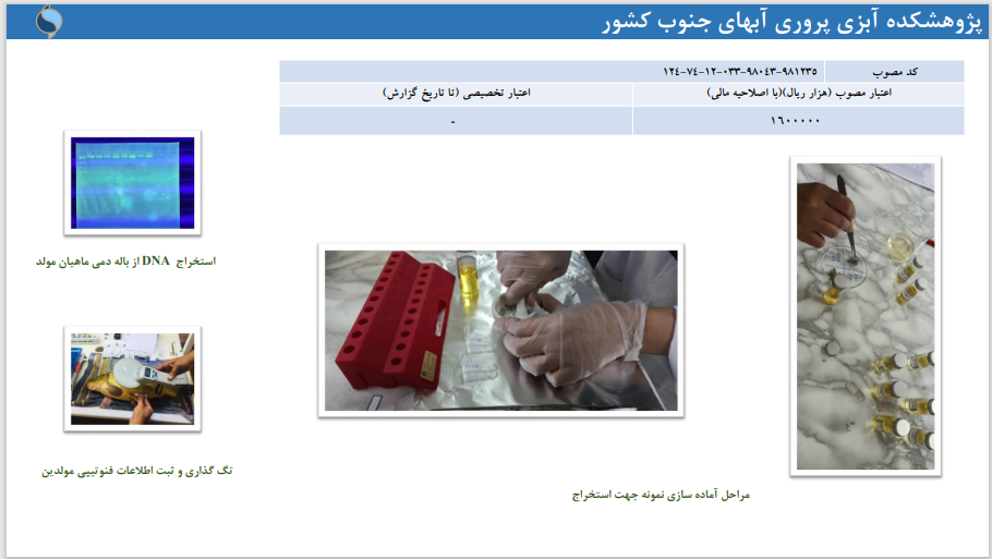 ساخت و بهینه سازی کیت مولتی پلکس تشخیص بیماری لکه سفید در میگو، بررسی شاخص های ژنتیکی جمعیت های مختلف مولدین وارداتی و پرورشی میگوی سفید غربی و بررسی تاثیر بهبود دهنده های خاک و پروبیوتیک تک سل بر مدیریت پرورشی استخرهای نیمه متراکم میگو از مهم ترین پروژه های این پژوهشکده است که دکتر دشتیان نسب به آنها اشاره کرد.