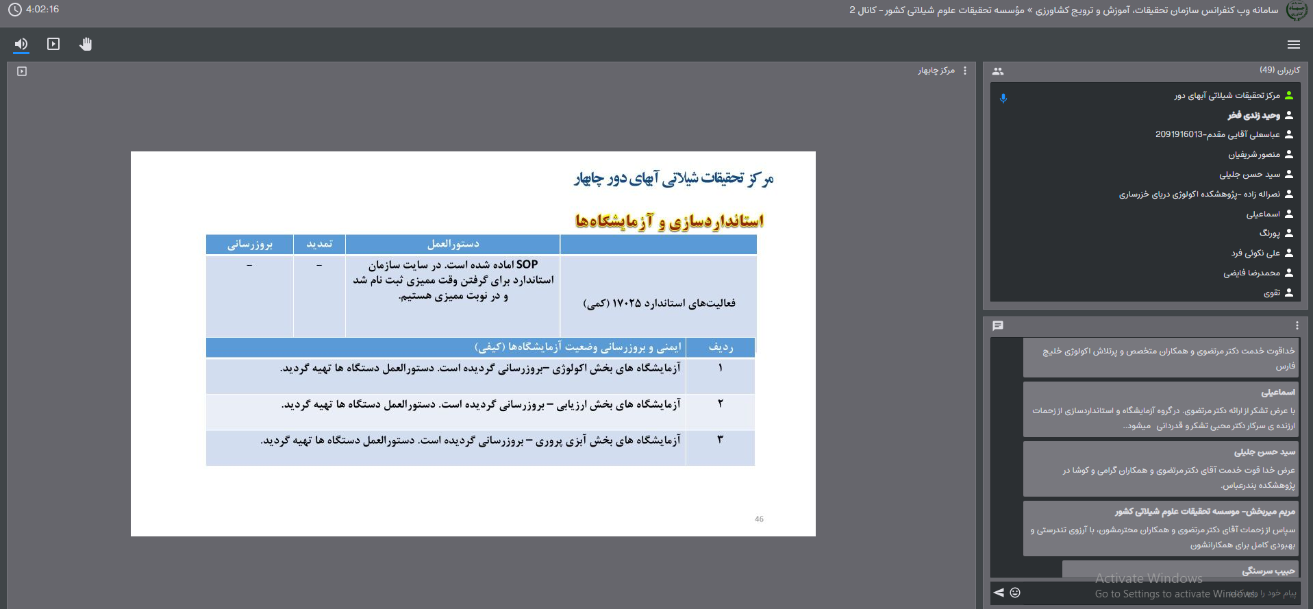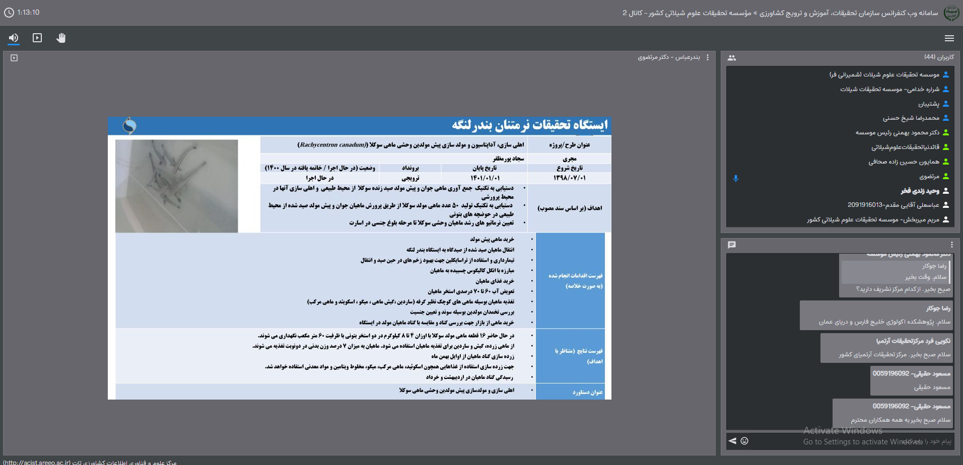 دکتر حافظیه، در خصوص مرتبط بودن مقالات با پروژه ها تاکید داشت . همچنین همکاری با مرکز بافق یزد و مرکز تحقیقات شیلاتی آبهای دور در خصوص شناور کاوش و گزارشی از وضعیت تهاجم ماهی تیلاپیا را ضروری دانست.