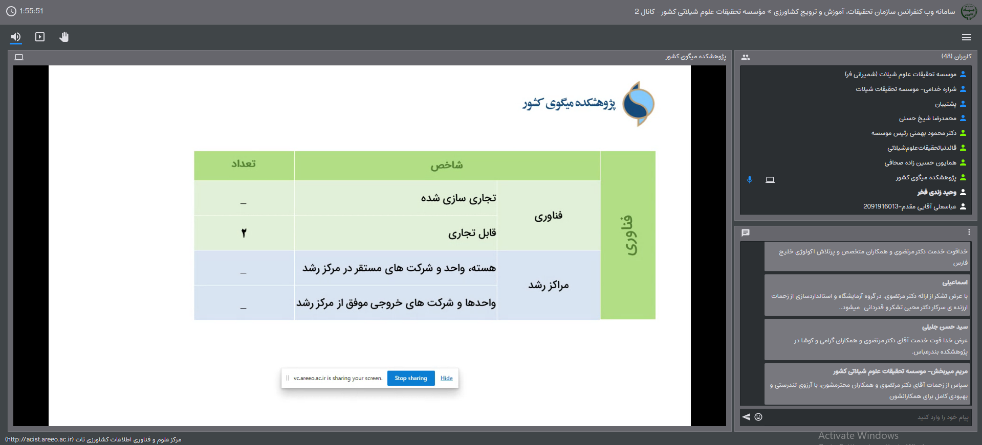 دکتر حافظیه، معاون پژوهش و فناوری موسسه ضمن تشکر از انجام تعهدات پژوهشکده در سال جاری به میزان بالای 90 درصد در خصوص تعیین تکلیف 2 مورد پروژه ثبت موقت و معوقه تاکید داشت. دکتر حسین زاده، معاون ترویج و انتقال یافته های تحقیقاتی نیز ضمن تشکر از اقدامات ترویجی در پژوهشکده، خواستار همکاری های مشترک در زمینه فعالیت های ترویجی آبزی پروری پژوهشکده با پژوهشکده میگو شد و تاکیدکردترویج ساردین ماهیان به طور ویژه در دستور کار قرار بگیرد.
