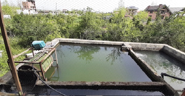 مزرعه با ظرفیت اسمی 5 تن و ظرفیت فعلی تقریباً 2 تن (1 تن ماهی با میانگین وزرنی 300 گرم و 1 تن بچه ماهی با میانگین وزرنی 50 گرم) متشکل از 4 عدد حوضچه 8 ضلعی و هر حوضچه با حجم تقریبی 40 مترمکعب و عمق تقریبی 2 متر با ورودی و خروجی مجزا و مجهز به سیستم هوادهی می باشد. منبع آب این مزرعه یک حلقه چاه با دبی تقریباً 7 لیتر بر ثانیه و مجهز به سیستم برگشت آب، 2 عدد حوضچه رسوب گیر، یک دستگاه درام فیلتر کوچک، برج هوادهی و یک دستگاه موتور ژنراتور بود. تغذیه ماهیان با استفاده از غذای شرکت فرادانه و طبق جدول غذادهی ماهیان سردآبی و ضدعفونی آب با استفاده از فرمالین انجام میشود.