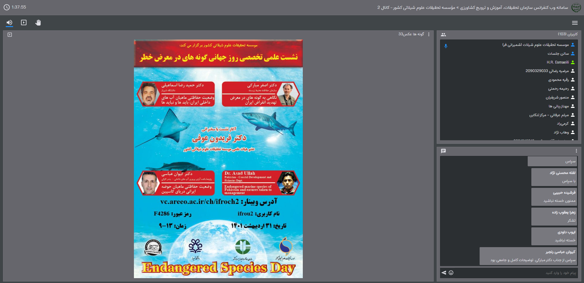 در ادامه دکتر اسداله علی محمد از دپارتمان حفاظت سواحل و شیلات بلوچستان – پاکستان، در خصوص معرفی گونه های در معرض خطر و مورد تهدید دریایی آب های پاکستان و اقدامات انجام شده برای مدیریت و حفاظت آنها مطالبی را ارائه کرد.