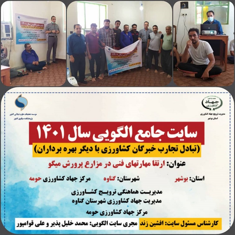 به گزارش روابط عمومی پژوهشکده میگوی کشور_ بوشهر، کارگاه آموزشی_ ترویجی با عنوان "ارتقا مهارت های فنی در مزارع پرورش میگو" در سایت الگویی گناوه برگزار گردید. دکتر محمد خلیل پذیر از پژوهشکده به اتفاق دکتر علی قوام پور از شیلات استان بوشهر، مجریان سایت جامع الگویی سال ۱۴۰۱ در شهرستان گناوه بودند. در راستای اهداف تعریف شده برای سایت الگویی، در این کارگاه یک روزه، دو موضوع "مدیریت پیشگیری از بیماری در مزارع پرورش میگو با تاکید بر بیماری AHPND ، WSSV و مدیریت برداشت میگو با هدف کاهش ضایعات، را برای حاضران بیان شد. هدف از ارایه این دوره ها افزایش ارتقا مهارت های فنی فعالین صنعت میگو، سرکارگران و کارگران مزارع می باشد.
