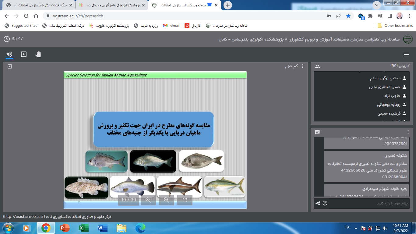 و کیفیت بسیار بالای گوشت و وجود تقاضای جهانی برای این گونه اظهار کرد و عمده عیب آن را سخت بودن تهیه مولدین نام برد. عمده کشورهای تولید کننده شاه ماهی در شرق آسیا را چین، کره، تایوان، ژاپن (بزرگترین تولید کننده و مصرف کننده این جنس در جهان)، نیوزیلند و استرالیا، کشورهای منطقه مدیترانه، مراکش و تونس در آفریقا، ایالات متحده، مکزیک، شیلیدر قاره آمریکا و امارات و عربستان در خاورمیانه می باشند. وی یکی از برنامه های تولید این گونه را با عنوان آبزی پروری در بیابان (Desert Aquaculture) با هدایت پروفسور Sagiv Kolkoski در کشور های عربستان، شیلی و اسرائیل بیان کردند که شاه ماهی به عنوان گونه اصلی در این برنامه مطرح است. همچنین در ادامه مزایا و معایب گونه های Mahi Mahi، Threadfins، Yellowfin Tuna، Mangrove Red Snapper، Croaker، Silver Pomfret، Silver Pompano، Grey Mullet و Milkfish برشمرد و گفت: گونه ای که می تواند ما را به اهداف پیش بینی شده در برنامه هفتم توسعه در افزایش تولید ماهی از طریق پرورش در قفس برساند گونه شاه ماهی خواهد بود که در سال های آینده در تکامل آبزی پروری در جهان نقش اساسی خواهد داشت به گونه ای که بسیاری از کشورهای جهان به سرعت در حال رو آوردن به تکثیر و پرورش این گونه می باشند و با توجه به اینکه موسسه تحقیقات علوم شیلاتی کشور متولی مطالعات و فعالیت های علمی آبزی پروری در کشور می باشد پیشنهاد می گردد، پروژه ای در این رابطه تدوین گردیده تا طی یک دوره پنج ساله بتوان به تکنولوژی تکثیر و پرورش این گونه در شرایط اسارت دست یافت. در پایان دکتر سروی به سوالات مطرح شده از طرف شرکت کنندگان که متشکل از پرورش دهندگان، کارشناسان و محققین شیلات، محیط زیست، پژوهشکده ها و مراکز تحقیقاتی، دانشگاه ها، دانشجویان و سایر شرکت کنندگان بود، پاسخ داد.
