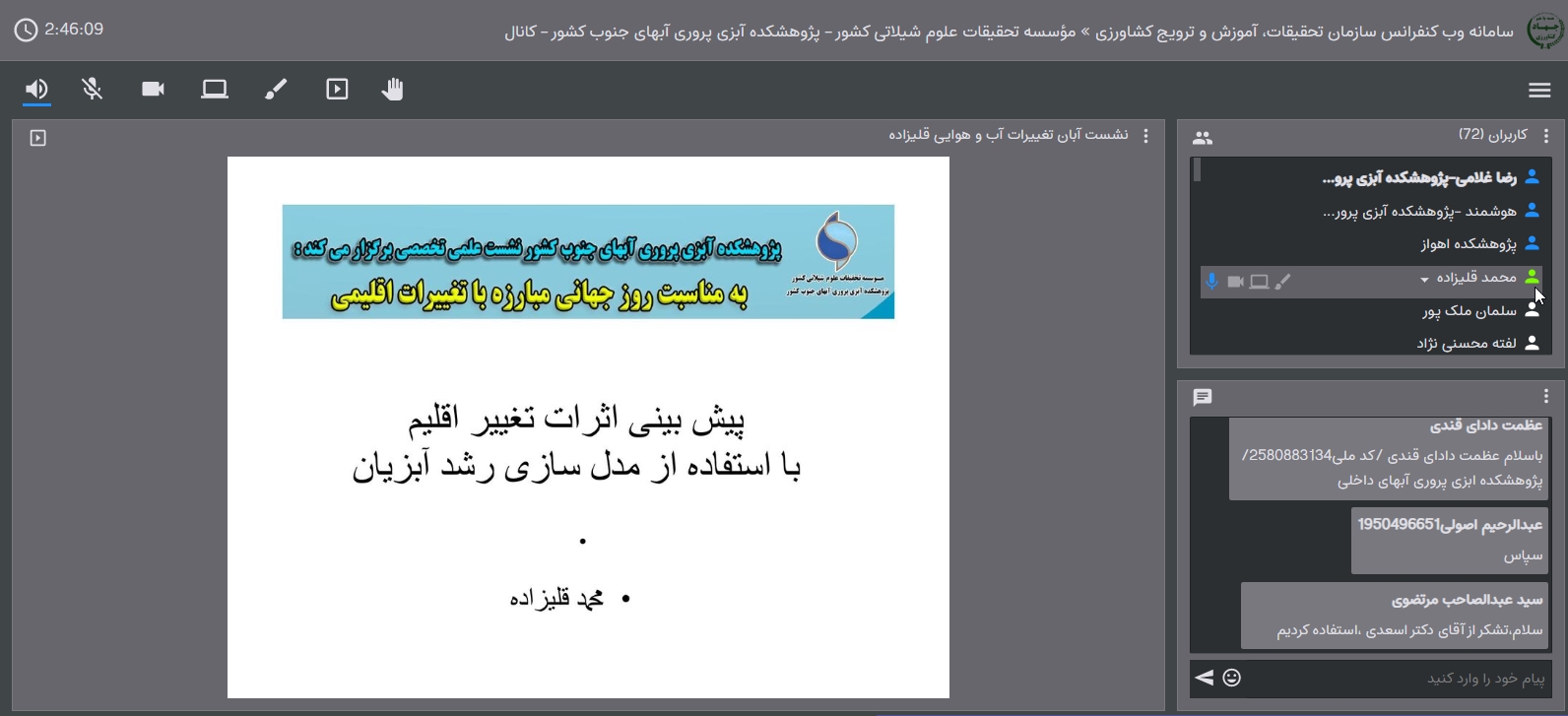 به گزارش روابط عمومی پژوهشکده آبزی پروری آب های جنوب کشور_ اهواز، نشست علمی_ تخصصی به مناسبت روز جهانی مبارزه با تغییرات اقلیمی با حضور اساتید و محققان این حوزه از دانشگاه تهران و پژوهشگاه هواشناسی و علوم جوی به دو صورت مجازی و حضوری در پژوهشکده دوم آبان ماه سال جاری برگزار گردید. پس از تلاوت آیاتی چند از کلام الله مجید، دکتر هوشمند، رئیس پژوهشکده ضمن خوشامدگویی به حضار، سخنرانی را با محوریت اثرات تغییر اقلیم بر آبزیان دریایی و فعالیت های شیلاتی در زیستگاه های ساحلی_ دریایی مناطق گرمسیری آغاز نمود. وی به پیشینه اقدامات و برنامه های جاری تغییر اقلیم در موسسه اشاره کرد. در ادامه دکتر افشین دانه کار، استاد و مدیر گروه محیط زیست دانشکده منابع طبیعی دانشگاه تهران از اثر تغییر اقلیم بر زیست بوم های ساحلی ایران سخن گفت و محیط های ساحلی را مناطق انتقالی و محل وقوع فعل و انفعالات شدید فیزیکی، اکولوژیک و اجتماعی خواند که در طول قرن بیستم تحت تاثیر طیفی از مخاطرات طبیعی و انسان پدید، دستخوش تغییرات بسیاری شدند و اثرات زیست محیطی گوناگونی را در مقیاس محلی، منطقه ای و جهانی تجربه کرده اند. وی، مخاطرات چندگانه ناشی از تغییر اقلیم جهانی را افزایش دمای هوا و آب، تغییر الگوی بارش، وقوع خشکسالی، افزایش تراز آب دریا، طوفان ها و تندبادها و تشدید پدیده های حدی اقلیمی برشمرد که سبب تغییر در ساختار و ترکیب، فرآیندها و عملکردهای بوم شناختی، خدمات و منافع آنها می شود. مدیر گروه محیط زیست دانشکده منابع طبیعی دانشگاه تهران افزود: افزایش تراز آب دریا بزرگترین تهدید برای سلامتی عملکرد اکوسیستم های ساحلی به ویژه مانگروها در سراسر جهان به شمار می رود. دکتر دانه کار، افزایش پدیده سفیدشدگی در جوامع مرجانی، کاهش نرخ رشد مرجان ها از طریق اسیدی شدن آب اقیانوس ها، بر هم خوردن رابطه همزیستی میان مرجان ها و جلبک های همزیست آنها را از اثرات افزایش دما و تبخیر بر آبسنگ های مرجانی برشمرد. دکتر فرحناز کیان ارثی، رئیس بخش بوم شناسی پژوهشکده آبزی پروری آب های جنوب کشور، سخنرانی خود را درباره روند تغییرات اقلیمی در تالاب بین المللی شادگان، ارائه نمود. کیان ارثی با بیان اینکه کاهش میزان بارندگی و افزایش درجه حرارت موجب افزایش شوری خاک در طی 64 سال در منطقه شادگان شده، آبیاری اراضی کشاورزی با آب شور را نیز باعث افزایش شور شدن بیش از پیش خاک برشمرد. وی افزود، در حال حاضر میزان شوری تالاب شادگان برای حضور گونه های غیر بومی و فرصت طلب مساعد بوده و شرایط محیطی باعث افزایش فراوانی آنها و جایگزینی آن با گونه های بومی منطقه شده است. رئیس بخش اکولوژی پژوهشکده، با اشاره به مروری بر فون ماهیان در سه دهه گذشته در تالاب شادگان، از کاهش شدید در فراوانی و تنوع جوامع آبزیان بومی به ویژه جمعیت باربوس ماهیان گفت و تغییرات فیزیکی، شیمیایی و اکولوژیک تالاب شادگان مانند: کاهش آب ورودی به تالاب در اثر خشکسالی و فعالیت های انسانی در بالادست، صید بیش از حد، آلودگی و شوری آب را از مهترین عوامل مهمی برشمرد که در سال های اخیر تنوع و فراوانی گونه ای تالاب را دگرگون کرده اند. وی در پایان، بهترین راه احیای تالاب را مدیریت تلفیقی آن با در نظر گرفتن نیاز آبی تالاب، کنترل گونه های غیربومی و مدیریت صید و صیادی دانست. دکتر ابراهیم اسعدی اسکویی، رئیس پژوهشکده اقلیم شناسی و تغییر اقلیم نیز از رویکردهای نوین در استفاده از اطلاعات هواشناسی در مواجهه با تهدیدات اقلیمی گفت و به معرفی قابلیت ها و دستاوردهای موجود در به کارگیری طیف متنوع محصولات هواشناسی در مواجه و سازگاری با تغییرات اقلیمی پرداخت. رئیس پژوهشکده اقلیم شناسی و تغییر اقلیم تصریح نمود که: مقابله با رخدادهای اقلیمی به طور کامل امکان پذیر نیست و راهکارهای مقابله و سازگاری با اثرات نامطلوب تغییر اقلیم ضروری می باشد. دکتر اسعدی اسکویی افزود، بر این اساس استفاده دقیق و تلفیقی از آمار و اطلاعات پایش،
