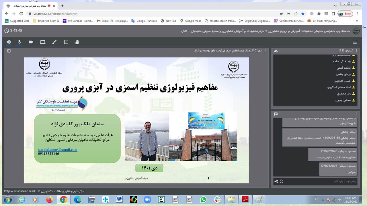 به گزارش روابط عمومی مرکز تحقیقات ماهیان سردآبی کشور، دکتر سلمان ملک پور کلبادی نژاد، عضو هیأت علمی این مرکز نسبت به برگزاری دوره آموزشی با عنوان "مفاهیم فیزیولوژی تنظیم اسمزی در آبزی پروری" از طریق شبکه آموزش کشاورزی اقدام نمود. در این دوره مفاهیم کلی و تعاریف مرتبط با فعالیت های تنظیم اسمزی از قبیل اسمز، انتشار، فشار اسمزی، اسمولالیته، اسمولاریته و شوری مطرح و به بافت های اصلی درگیر در فرآیند و مکانیزم های تنظیم اسمزی در ماهیان آب شیرین و آب شور شامل آبشش، کلیه و لوله گوارش و عملکرد آنها اشاره شد و در پایان با توجه به مفاهیم ارائه شده به کاربرد حمام نمک در آبزی پروری نیز اشاره گردید.