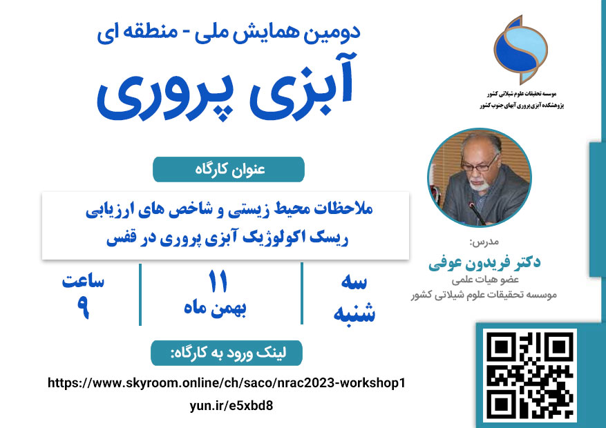به گزارش روابط عمومی پژوهشکده آبزی پروری آب های جنوب کشور، کارگاه «ملاحظات محیط زیستی و شاخص های ارزیابی ریسک اکولوژیک آبزی پروری در قفس» توسط دکتر فریدون عوفی، عضو هیات علمی موسسه تحقیقات علوم شیلاتی کشور در تاریخ 11 بهمن ماه سال جاری از سری کارگاه های مرتبط با دومین همایش ملی- منطقه ای آبزی پروری برگزار شد.