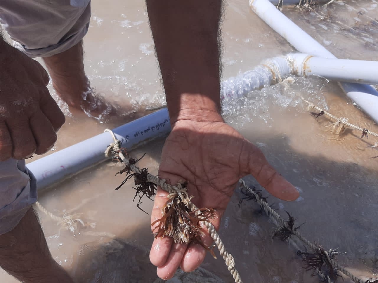 به گزارش روابط عمومی مرکز تحقیقات شیلاتی آبهای دور_ چابهار، پروژه پایلوت کشت جلبک قرمز گراسیلاریا در استخر مانداب (Lagon) مزارع پرورش میگو شرکت کشت و صنعت مکران در منطقه گوردیم جهت توسعه انبوه پرورش این جلبک در پساب پرورش میگو از دو منظر تولید جلبک و پالایش پساب در راستای قرار داد فی ما بین مرکز تحقیقات شیلاتی آبهای دور و شرکت کشت و صنعت مکران انجام شد. در این بازدید یک روزه کشت انجام شده قبلی مورد ارزیابی وضعیت قرار گرفت و نشا کاری جدید نیز انجام شد، هم اکنون بازدید هفتگی و ادامه کشت با جلبک سبز در برنامه کاری بوده و به طور جدی دنبال می شود.
