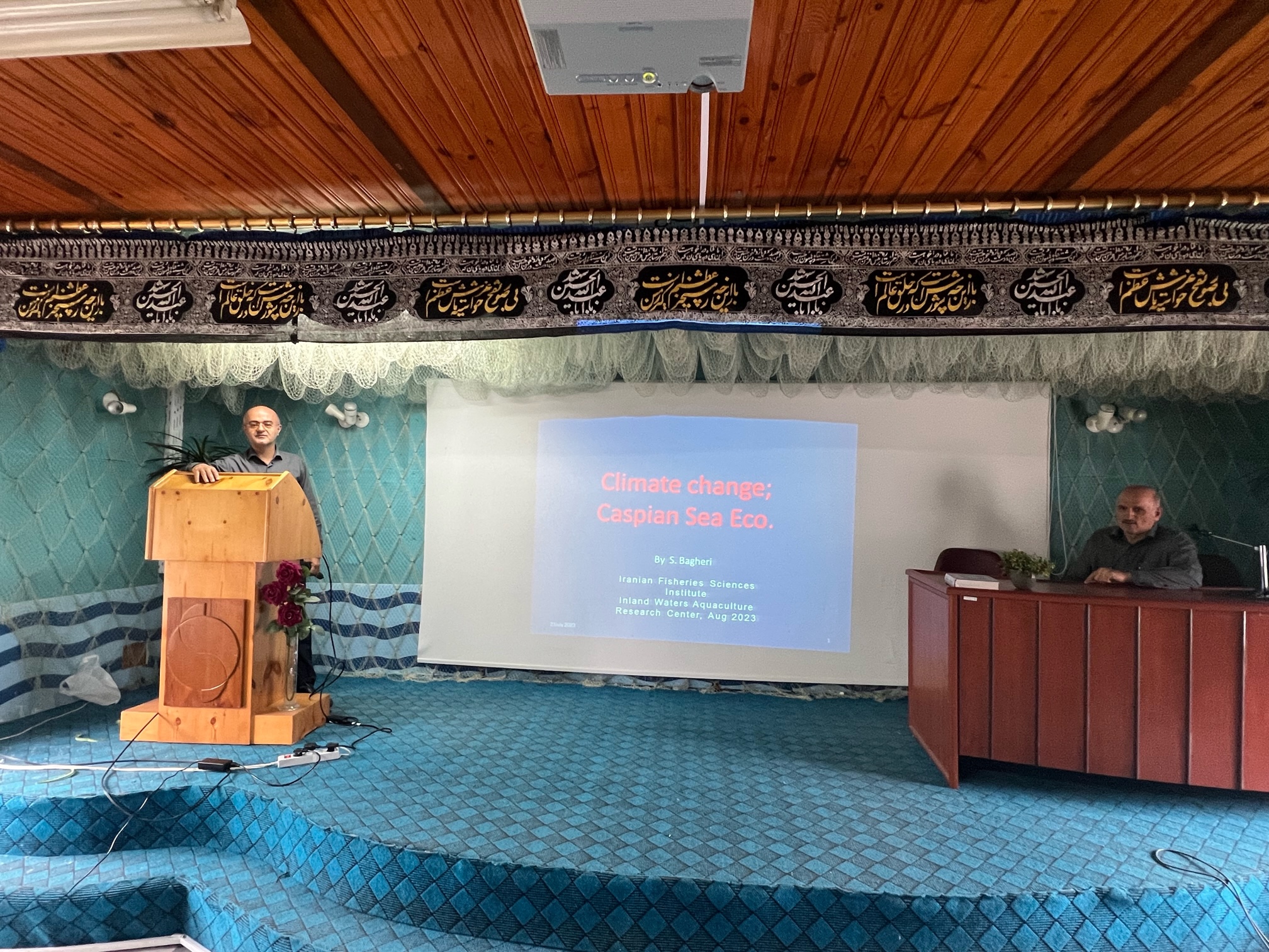 به گزارش روابط عمومی پژوهشکده آبزی پروری آبهای داخلی کشور_ گیلان، سخنرانی علمی با عنوان " اثر تغییر اقلیم بر اکوسیستم دریای کاسپین_ آبهای گیلان " توسط دکتر سیامک باقری از اعضای هیئت علمی این پژوهشکده در سالن جلسات برگزار گردید. دستکاری های انسانی بر روی زیستگاه ها و تغییرات اقلیم، باعث از بین رفتن تنوع زیستی و در نتیجه کاهش پایداری اکوسیستم می شود. بررسی های اخیر در دریای کاسپین نشان داد، شوری، دمای آب و تبخیر و پسروی آب دریا افزایش داشته است، همچنین لایه ترموکلاین برای اولین بار در فصل بهار مشاهده و شروع کاهشی دما از لایه های سطحی آب تا عمق 20 متر در سواحل گیلان رویت گردید. طبق مطالعات انجام گرفته سایر تاثیرات ناشی از گرمایش زمین و آلودگی های زیست محیطی شامل: ظهور گونه های غیر بومی پلانکتون و بروز شکوفایی سیانوباکتریا طی سال های اخیر بوده است.
