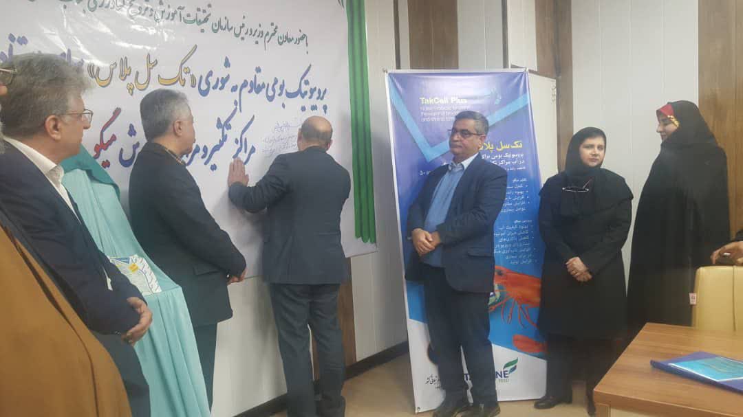 به گزارش روابط عمومی پژوهشکده میگوی کشور_بوشهر، 18 بهمن ماه 1402، همزمان با دهه مبارک فجر، آئین رونمایی از محصول پروبیوتیک بومی، توسط تلاش محققان موسسه تحقیقات علوم شیلاتی کشور، با حضور سید مجتبی خیام نکویی، معاون وزیر و رییس سازمـان تحقیقات، آموزش و ترویـج کشاورزي، محمود بهمنی رئیس موسسه تحقیقات علوم شیلاتی کشور، باستین معاون اسـتاندار بوشهر، منفرد رییس سازمان جهاد کشاورزی، بابک قائدنیا، معاون برنامهریزی و پشتیبانی، مریم میربخش رئیس بخش زیست فناوری موسسه، نوذر منفرد رئیس جهاد کشاورزی، هاشمی نماینده ولیفقیه در جهاد بوشهر، دشتی زاده رئیس مرکز تحقیقات، تنگستانی، مدیر کل دامپزشکی، مریم تاج آبادی ابراهیمی مدیر شرکت فنآور تک ژن، جمعی از مدیران شیلات استان و محققان این حوزه در سالن اجتماعات پژوهشکده برگزار شد.
