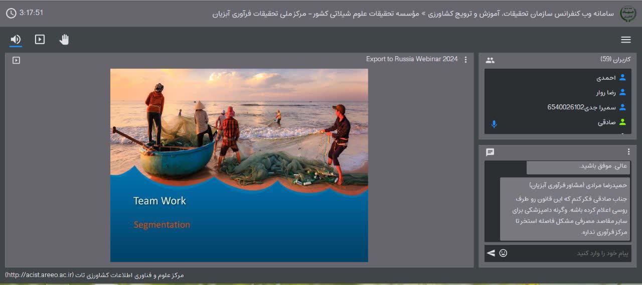 خدایی، دبیر کل اتحادیه تولید و تجارت آبزیان به لزوم توجه به ترکیب انواع مصرف محصولات آبزی در کشور روسیه از منظر امکان سنجی صادرات اشاره کرد. ایشان اظهار داشت انواع محصولات بسته بندی آبزیان در فروشگاه های روسیه و مهمترین آبزیانی که در سال 1401 روسیه از ایران درخواست کرده که به ترتیب شامل: میگو، قزل آلا و ماهیان دریایی بوده و در سال 1401 روسیه در رتبه نخست وارد کنندگان میگوی ایران قرار گرفت در حالی که همیشه چین و امارات پیشتاز بودند. در ادامه روند تغییرات محصولات صادر شده به اوراسیا را مورد بررسی قرار داد و به رشد چشمگیر صادرات قزل آلا نزدیک به 1150 تن و میگو حدود 2900 تن در سال 1401، صادرات خوراک آبزیان به کشور روسیه (قریب40 تن) در سال گذشته علاوه بر کشورهای قرقیزستان، ارمنستان و قزاقستان اشاره داشت.