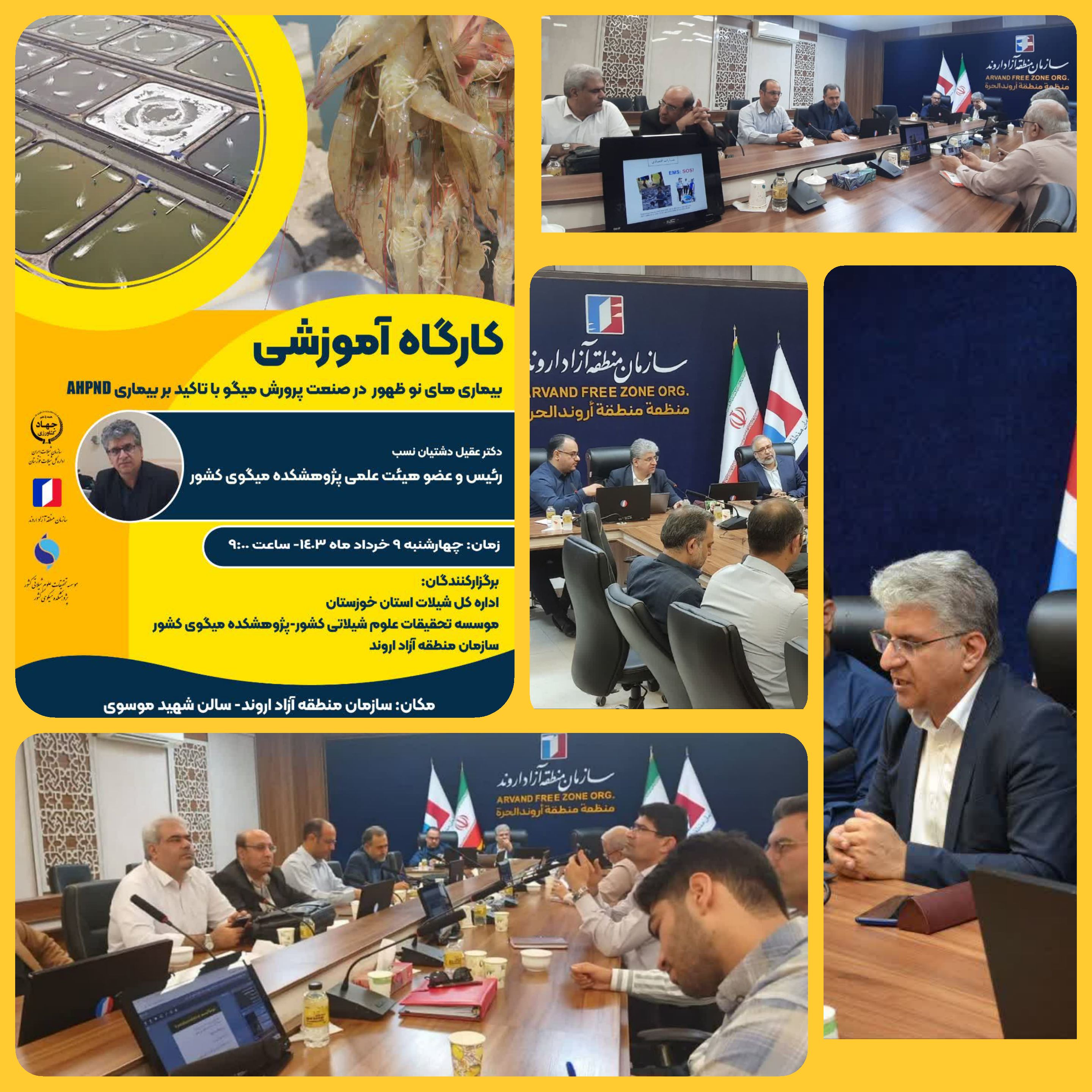 به گزارش روابط عمومی پژوهشكده میگوی كشور، کارگاه آموزشی بیماری های نوظهور در صنعت پرورش میگو با تاکید بر بیماری AHPND با ارائه عقیل دشتیان نسب، رئیس پژوهشکده برای استفاده مدیران، بهره برداران، کارشناسان بخش خصوصی و دولتی در منطقه آزاد اروند آبادان برگزار شد.