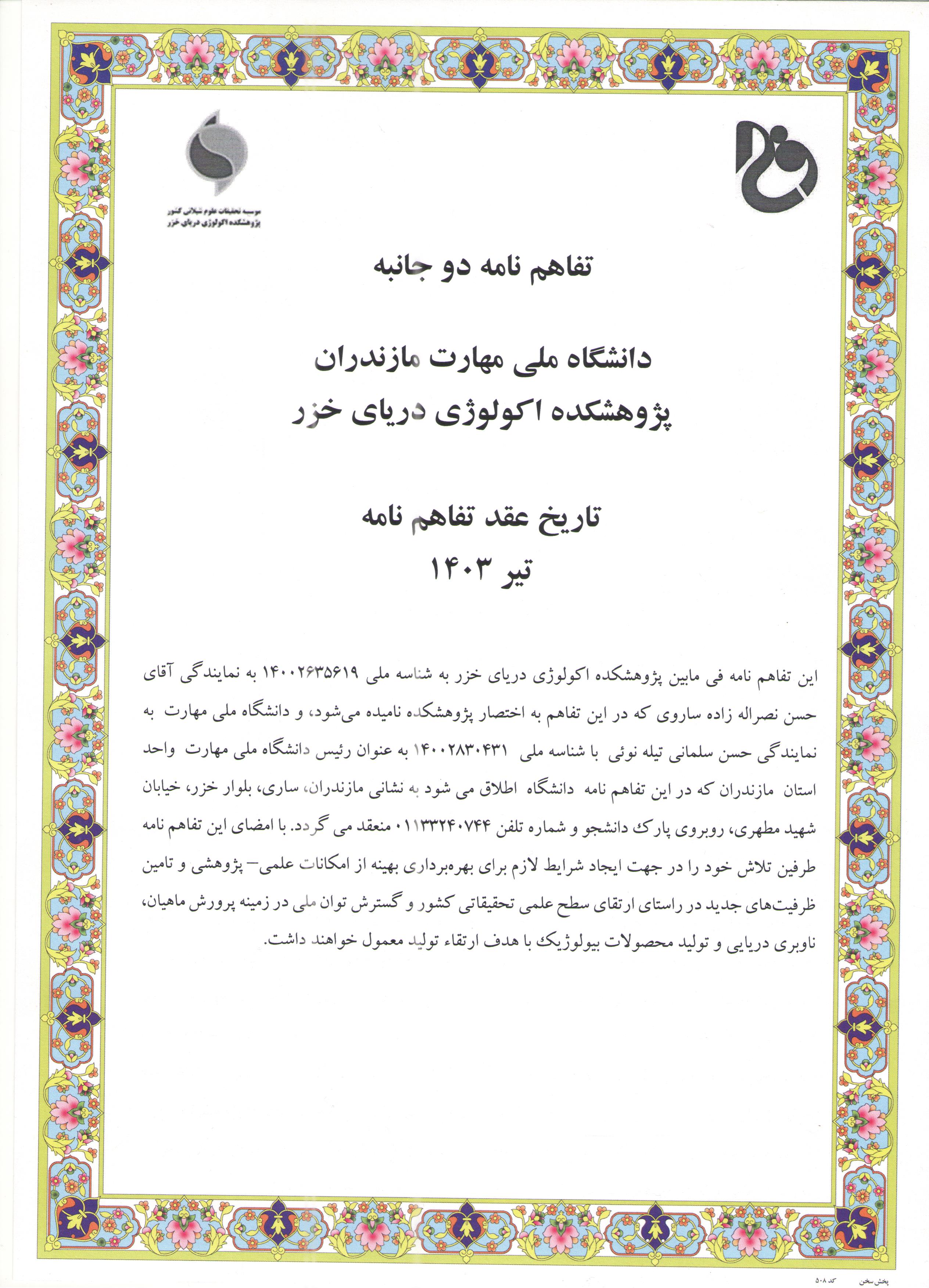 در انتهای این جلسه نیز تفاهم نامه ای بین پژوهشکده و دانشگاه ملی مهارت مازندران به امضا روسای طرفین رسید.