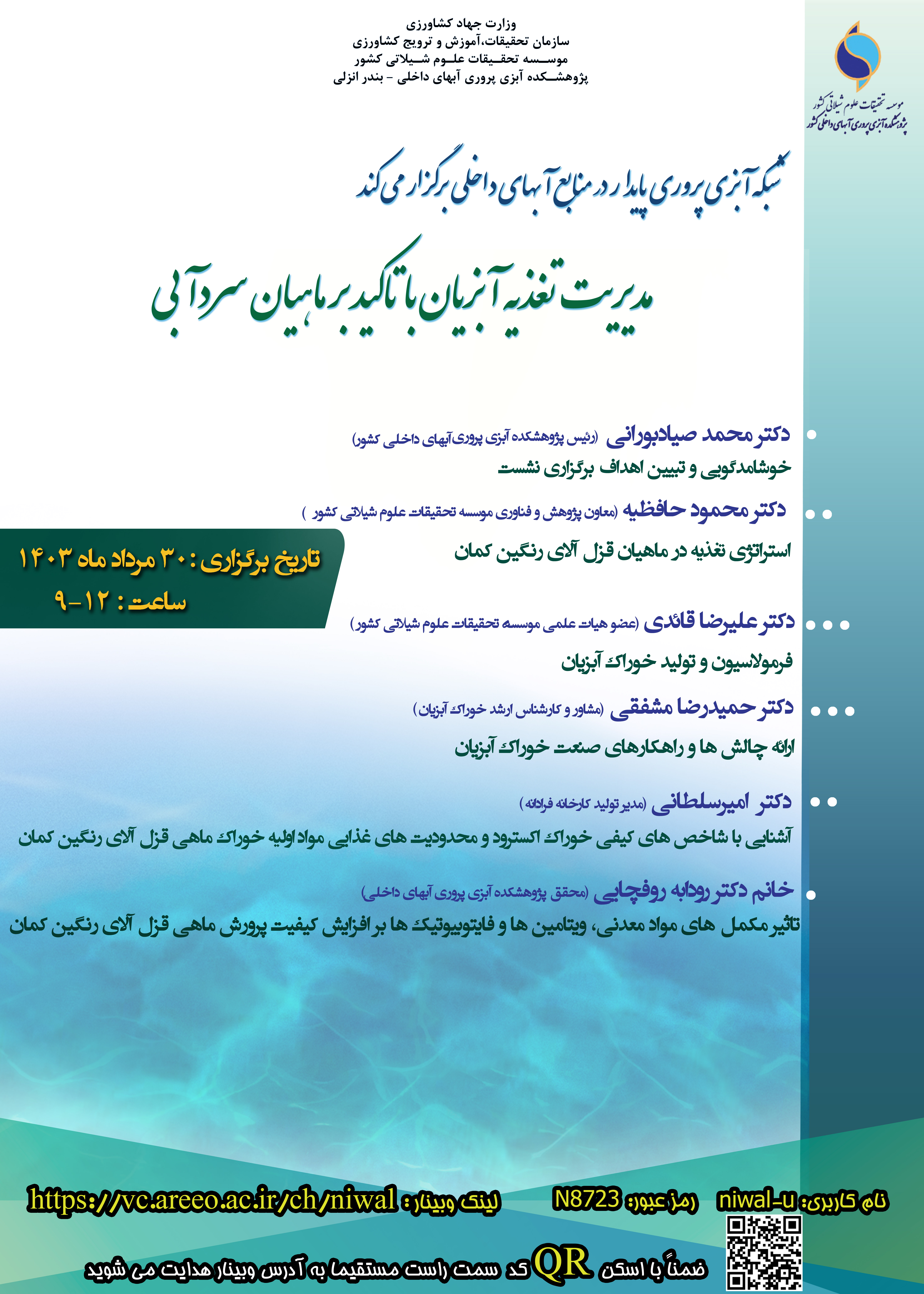 همچنین، تنظیم جیره غذایی مناسب با توجه به مراحل رشد، دما، فصول و سایر عوامل محیطی می تواند بر افزایش رشد، بهبود ضریب تبدیل غذایی و در نهایت سودآوری این بخش تأثیر چشمگیری داشته باشد.