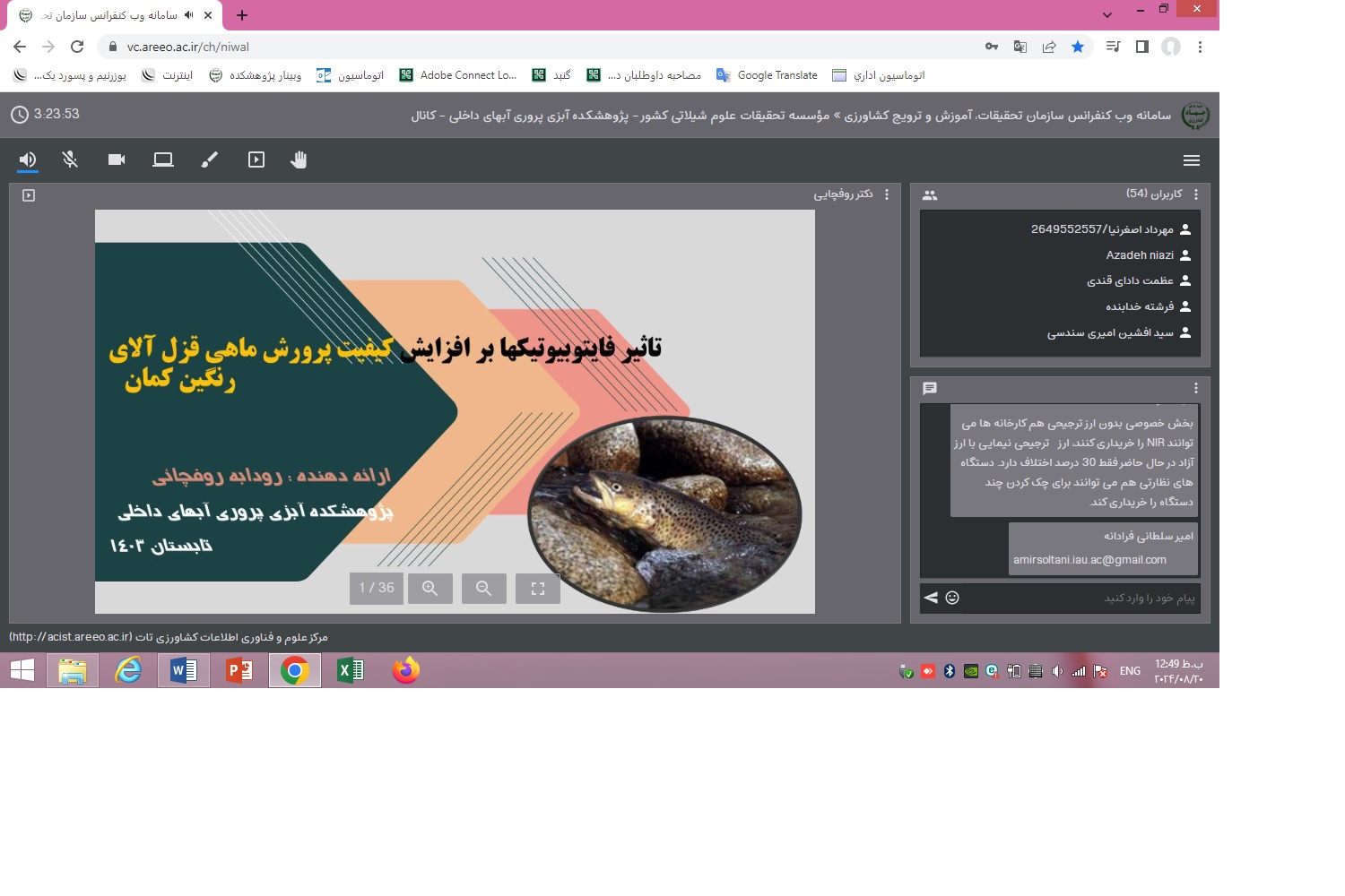 به گزارش روابط عمومی پژوهشکده آبزی پروری آبهای داخلی-بنر انزلی، در راستای سلسله جلسات شبکه توسعه آبزی پروری پایدار در منابع آبهای داخلی، نشست علمی با موضوع " مدیریت تغذیه آبزیان با تاکید بر ماهیان سردابی" در روز سه شنبه 30 مرداد 1403 در سالن جلسات پژوهشکده مذکور بصورت برخط با شرکت محققین و پژوهشگران موسسه تحقیقات علوم شیلاتی کشور و پژوهشکده های تابعه در سرتاسر کشور، دانشگاه ها و کارخانجات تولید غذای ماهی در بخش خصوصی برگزار شد.