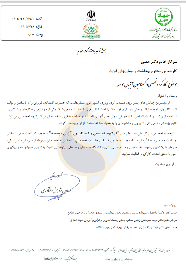 در همین راستا، موسسه تحقیقات علوم شیلاتی کشور با تشکیل کارگروه تخصصی واکسیناسیون آبزیان، به دنبال بهرهگیری از نظرات و تجربیات متخصصان در این زمینه است. این کارگروه با حضور کارشناسان از سازمان دامپزشکی کشور، سازمان شیلات ایران، موسسه واکسن و سرمسازی رازی، و همچنین دانشگاهها و دیگر نهادهای پژوهشی، به بررسی راهکارها و تدوین برنامههای عملیاتی میپردازد.