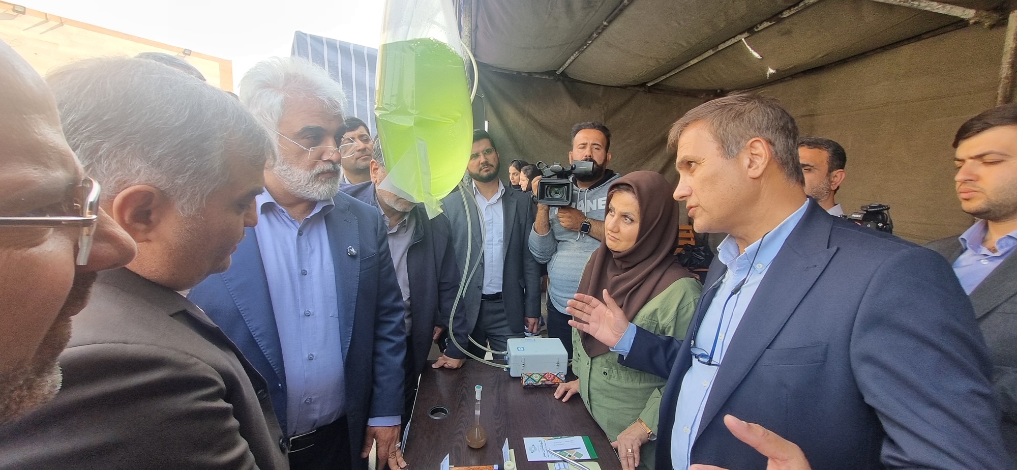 حاضران از غرفه پژوهشکده آبزیپروری کشور بازدید کردند و محمد صیاد بورانی و رودابه روفچایی توضیحاتی درباره دستاوردها، محصولات فناورانه و نتایج تحقیقات در زمینه کشت و توسعه جلبک ارائه دادند.