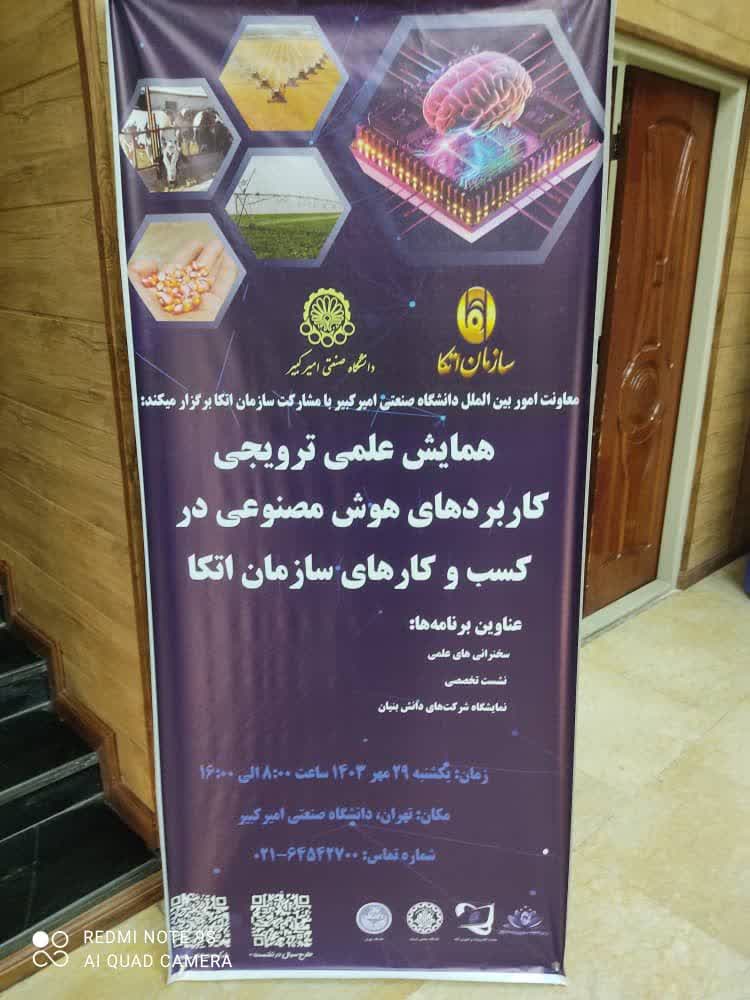 به گزارش روابط عمومی مرکز تحقیقات شیلاتی آبهای دور-چابهار، دکتر سید احمد رضا هاشمی، عضو هیأت علمی این مرکز، در همایش ملی "کاربردهای هوش مصنوعی در کسبوکار" که در دانشگاه صنعتی امیرکبیر (پلیتکنیک تهران) و با همکاری سازمان اتکا (تعاونی مصرف نیروهای مسلح) برگزار شد، حضور یافت.