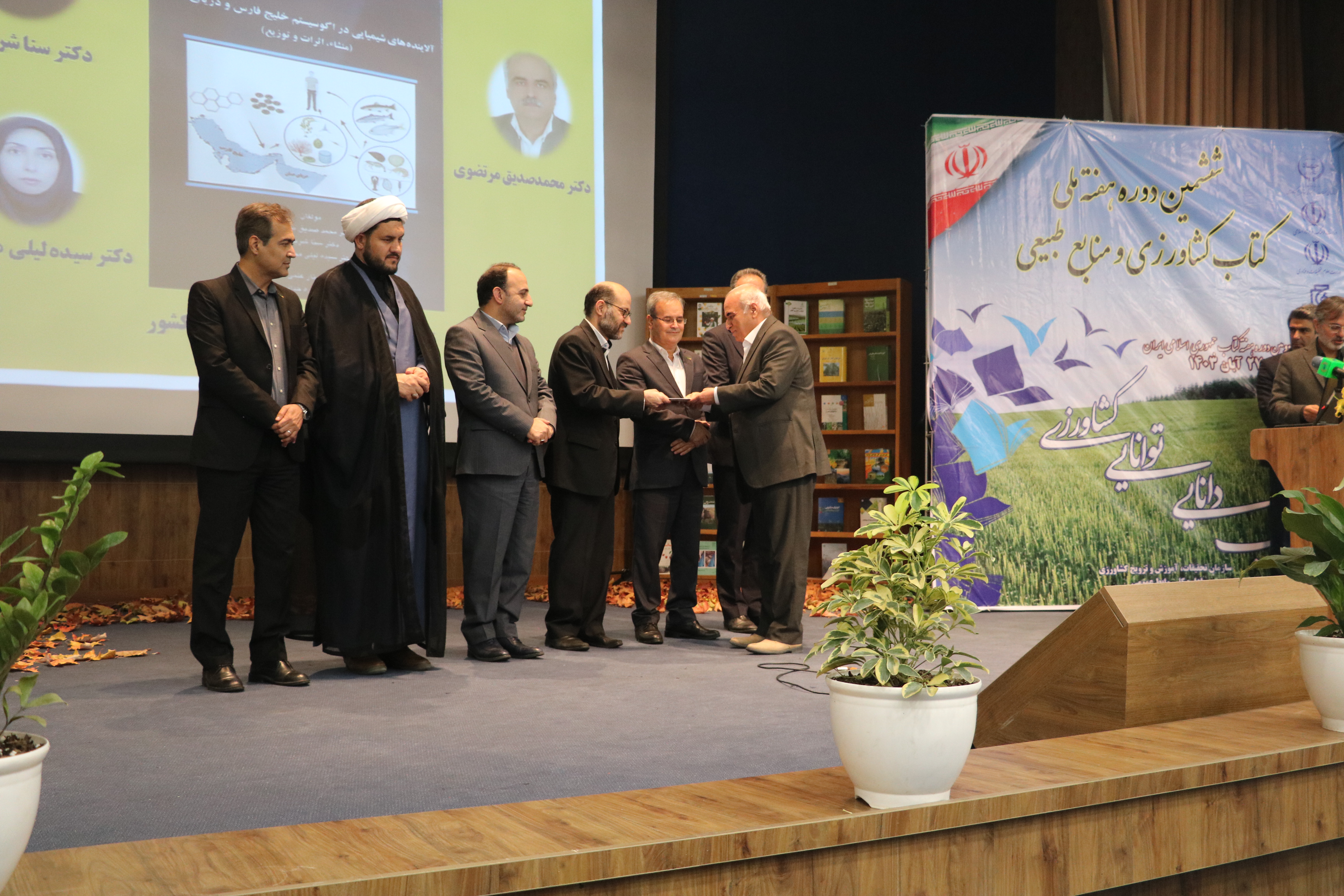 در این رویداد از آثار برجسته در حوزه کشاورزی و منابع طبیعی تقدیر به عمل آمد، همچنین، کتاب "آلایندههای شیمیایی در اکوسیستم خلیج فارس و دریای عمان (توزیع، منشأ، اثرات)"، اثر مولفان: محمد صدیق مرتضوی، رئیس پژوهشکده اکولوژی خلیج فارس و دریای عمان، ثنا شریفیان، عضو هیات علمی پژوهشکده و سیده لیلی محبی نوذر، معاون پژوهش و فناوری پژوهشکده مذکور بهعنوان کتاب شایسته تقدیر از سوی هیأت داوران انتخاب شد.