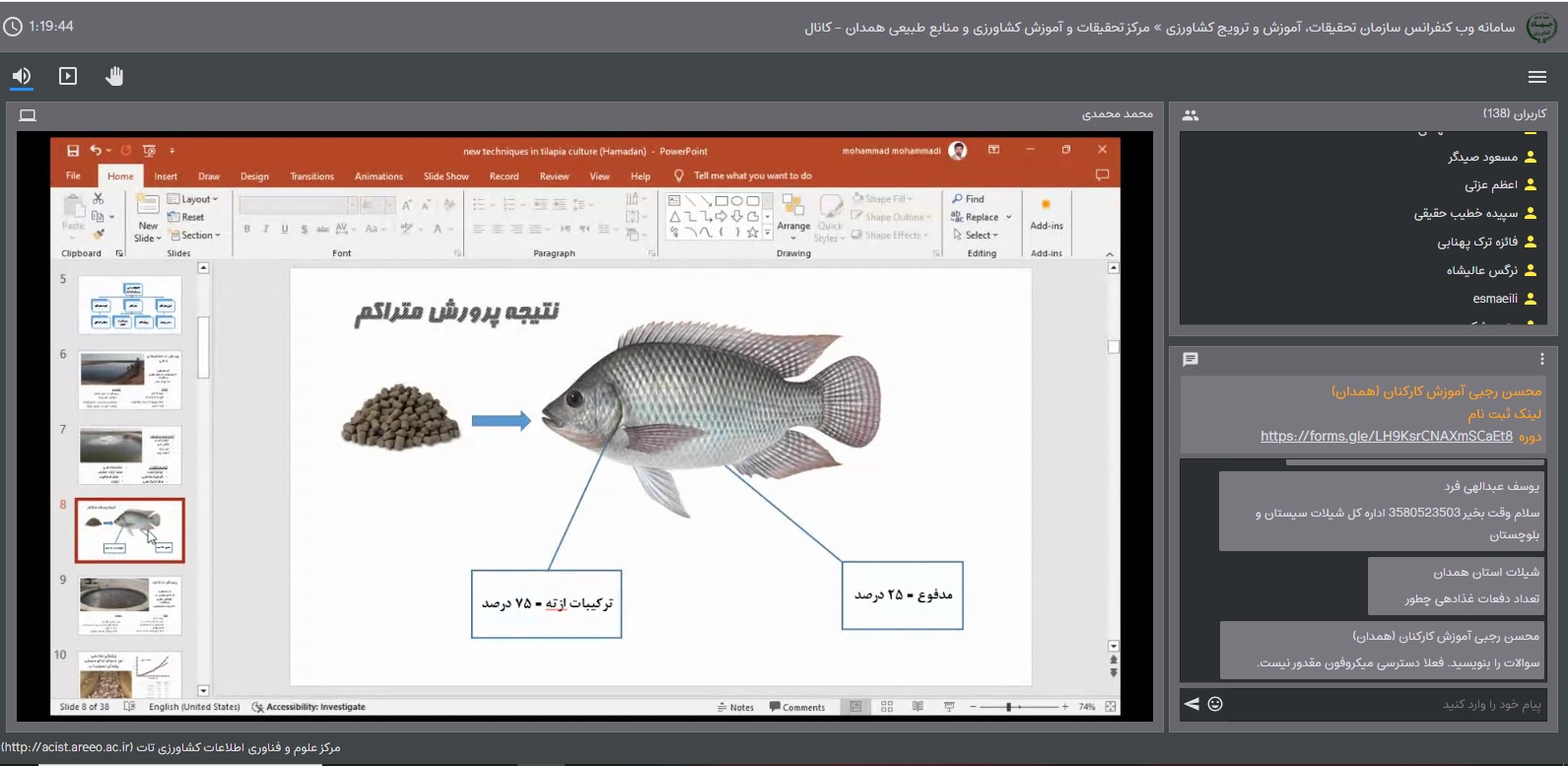 در این دوره انواع تکنیک های مختلف پرورش ماهی تیلاپیا تدریس و با یکدیگر مقایسه شدند و در انتها به سوالات شرکت کنندگان پاسخ داده شد.