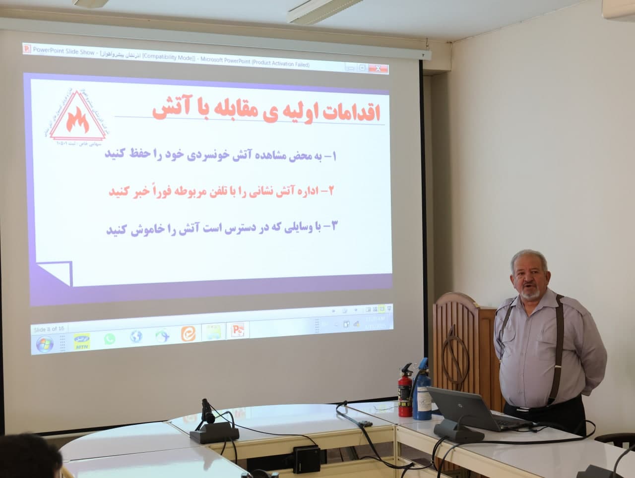 در بخش عملی، شرکتکنندگان با استفاده از کپسولهای آتشنشانی، تمرینهای اطفای حریق را در محیطی کنترلشده انجام دادند تا ضمن کسب تجربه، تواناییهای خود را در مدیریت شرایط اضطراری تقویت کنند. این دوره با استقبال کارکنان پژوهشکده روبهرو شد و نقش مهمی در ارتقای سطح ایمنی و آمادگی آنان داشت.