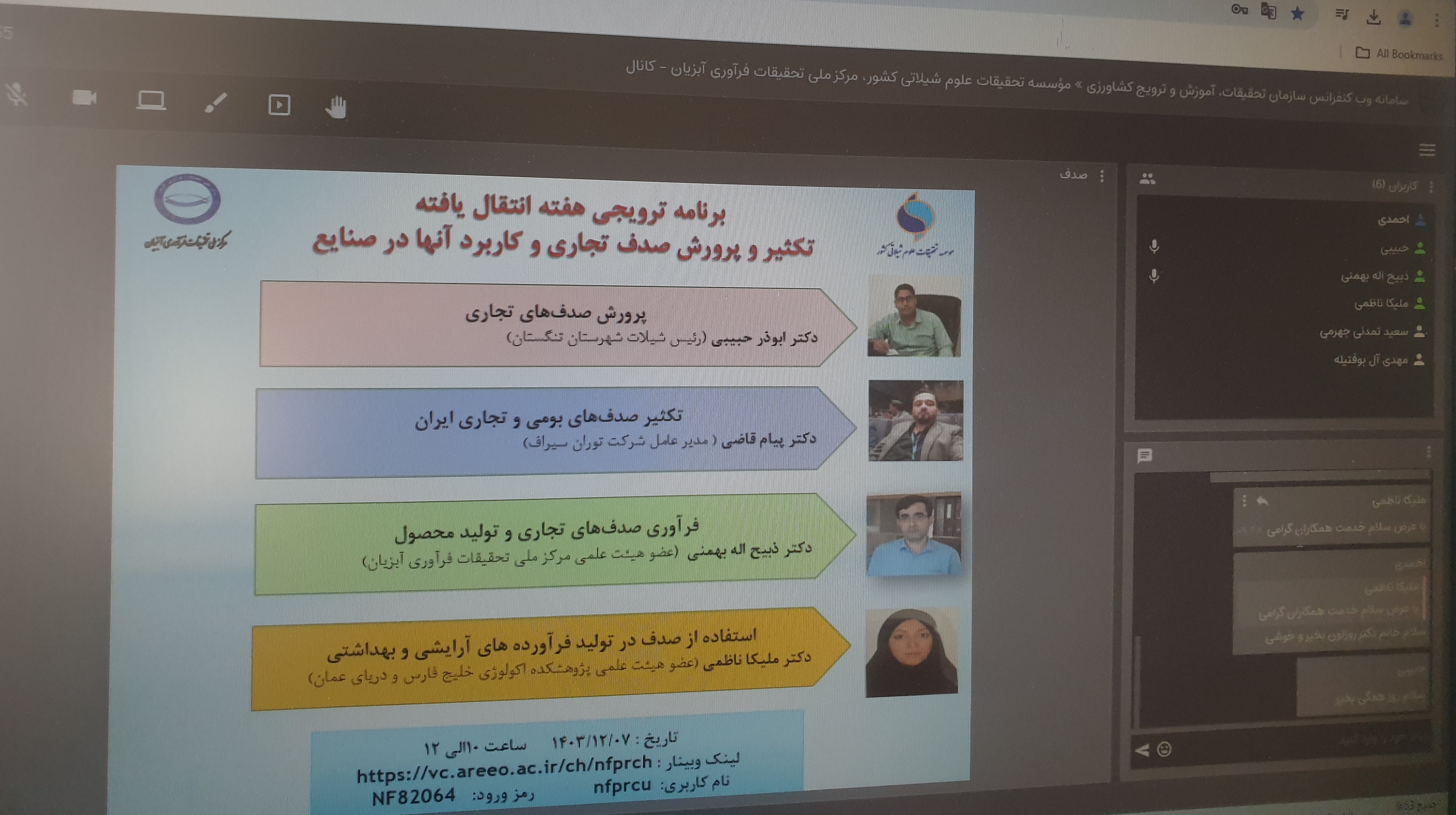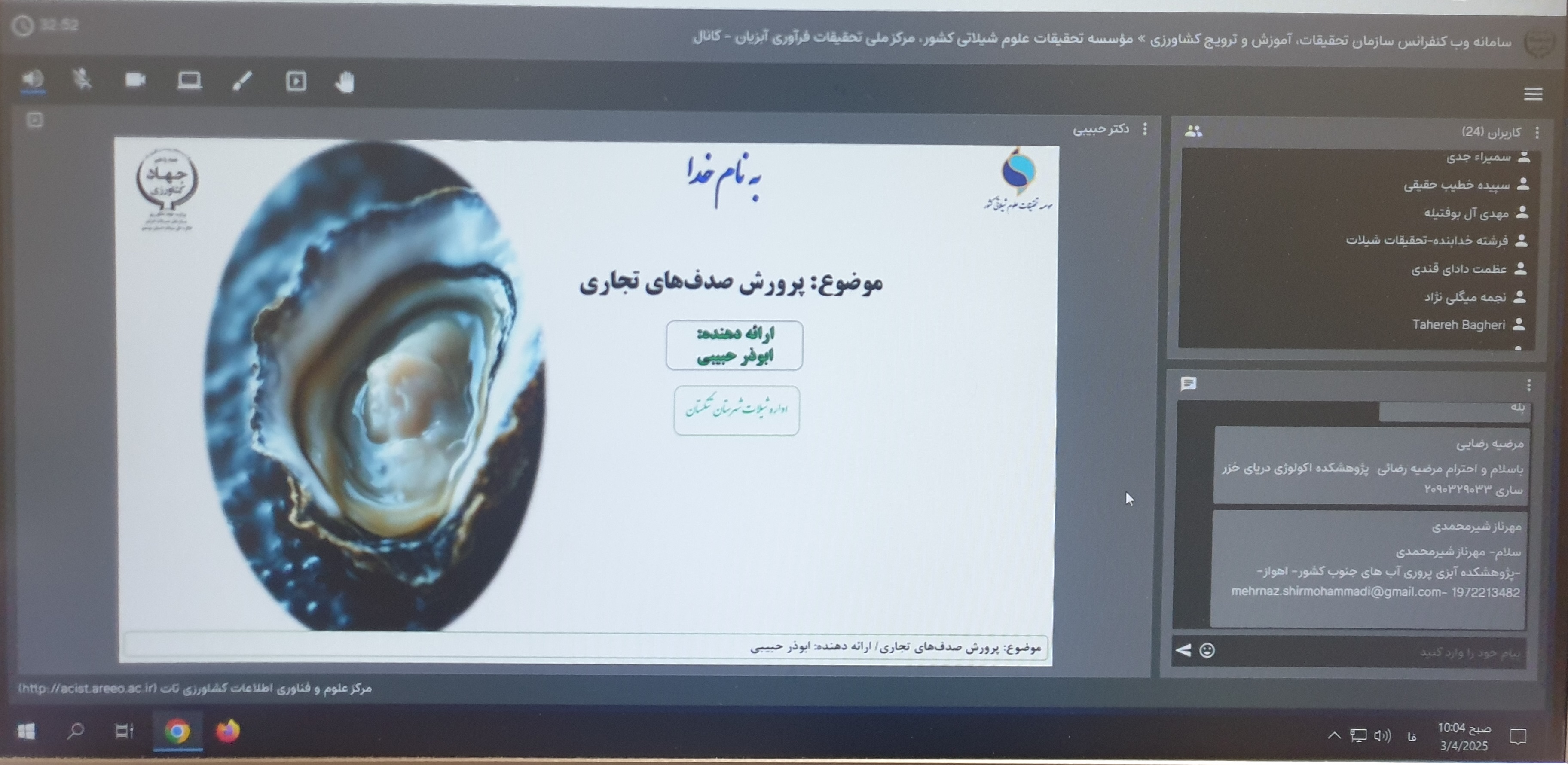 در این وبینار، موضوعات متعددی پیرامون زنجیره تکثیر، پرورش و فرآوری صدفهای تجاری ارائه شد: