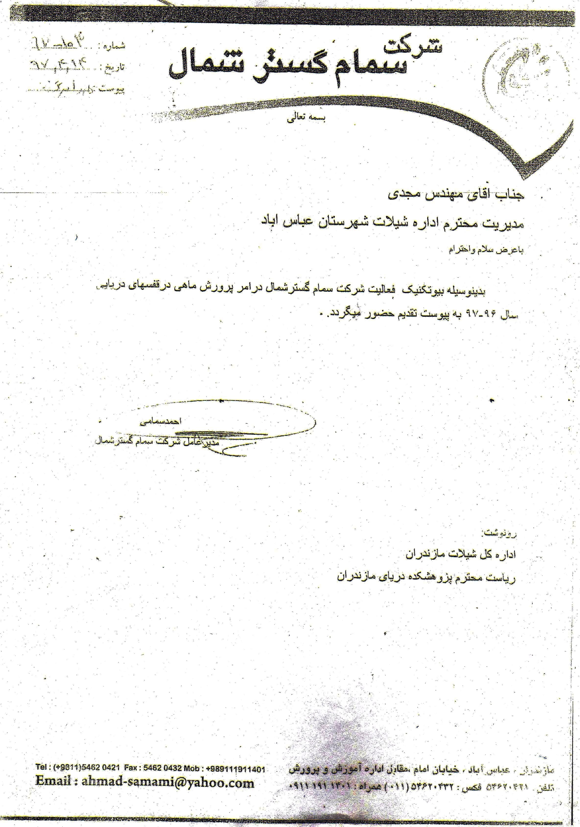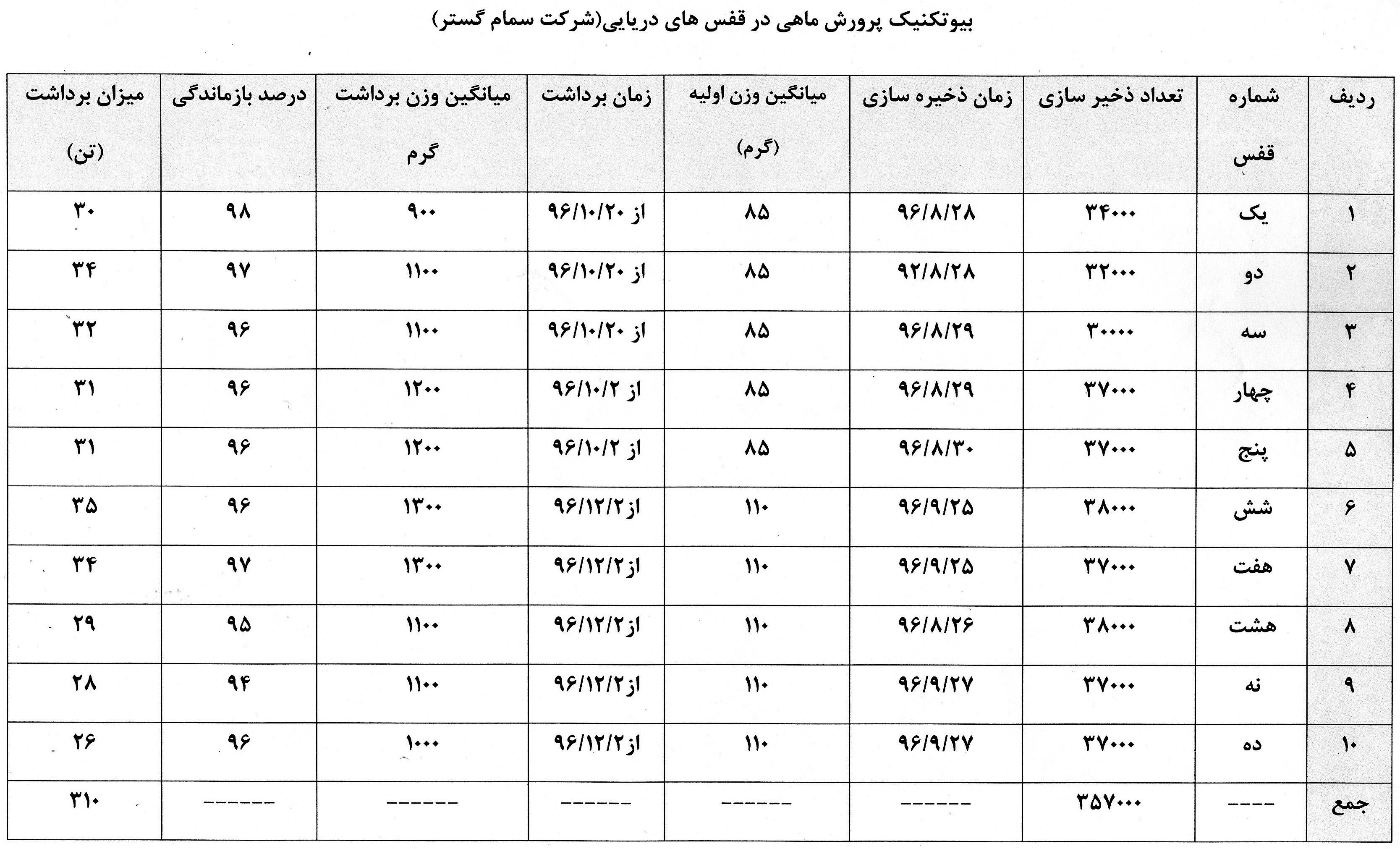 پژوهشکده اکولوژي آبزيان درياي خزر - شنبه بیست و هفنم مرداد 1397 آمار نهایی تولید مزرعه الگویی سمام گستر شمال آمار نهایی تولید مزرعه الگویی سمام گستر شمال
