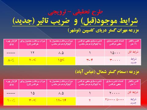 پژوهشکده اکولوژي آبزيان درياي خزر - چهارشنبه شانزدهم اسفند 1396 مقایسه شرایط موجود و ضریب تاثیر طرح مقایسه شرایط موجود و ضریب تاثیر طرح