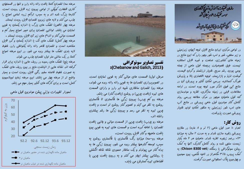 مرکز تحقيقات ملي آبزيان آبهاي شور - شنبه یکم دی 1397 بررسی روند تکامل گناد مولدین فیل ماهی پرورشی در منابع آب های لب شور زیرزمینی بررسی روند تکامل گناد مولدین فیل ماهی پرورشی در منابع آب های لب شور زیرزمینی